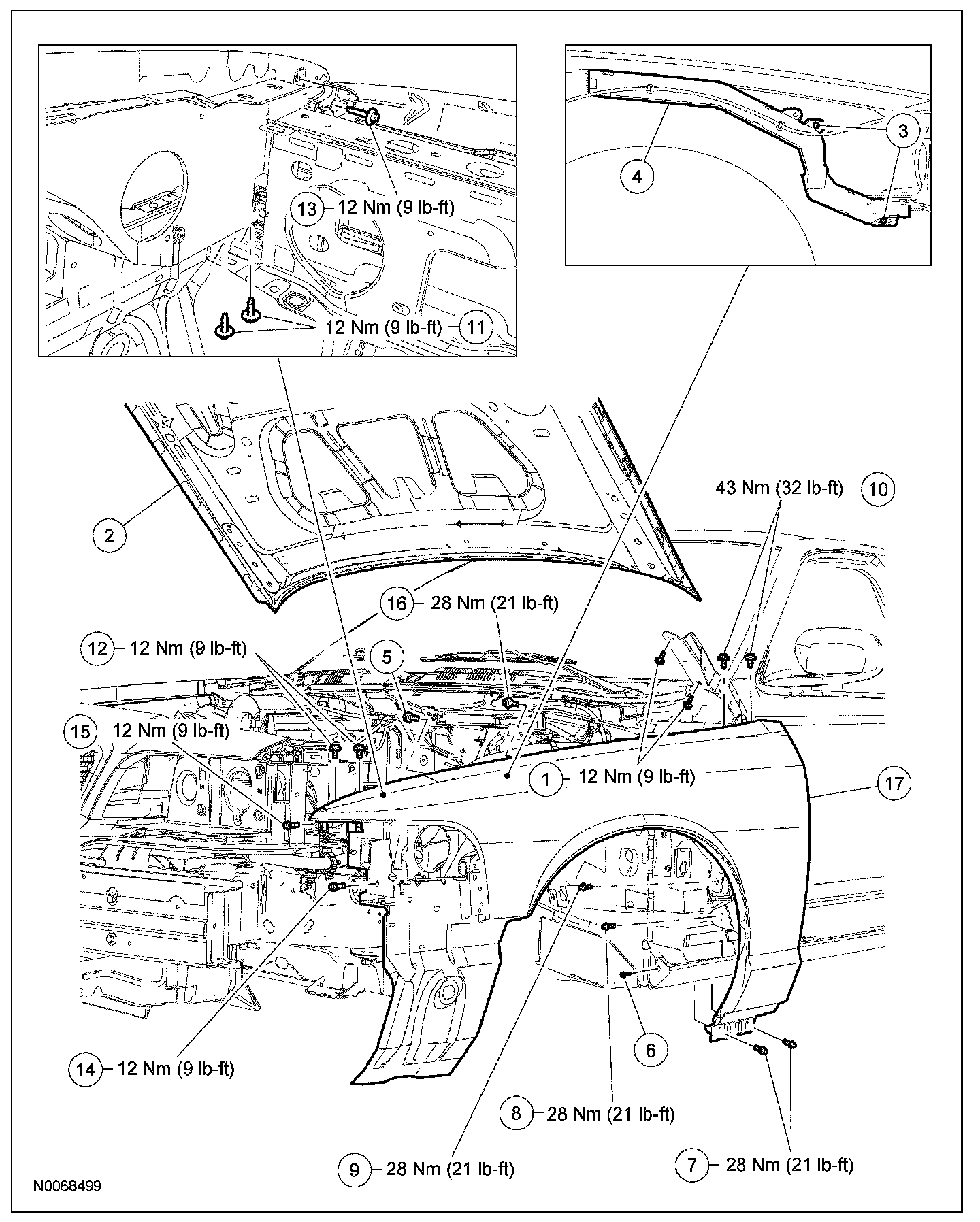 - Tighten to 43 Nm (32 lb-ft).