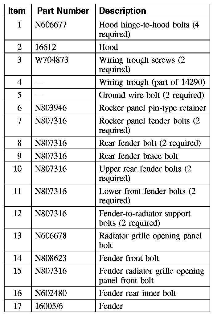 13. NOTE: The wire harness trough is only located on the LH fender.