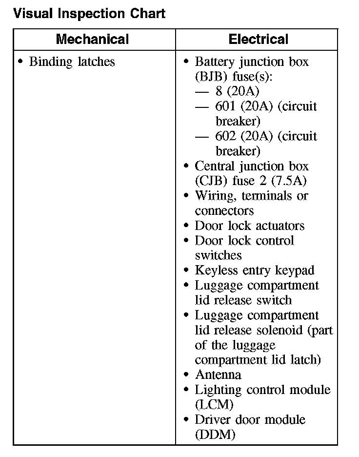 NOTE: Before starting electrical diagnosis, check for mechanical binds by manually operating the door locks. Operate the lock system several times from each switch while observing the operation of all the door locks. Be sure the battery is fully charged.