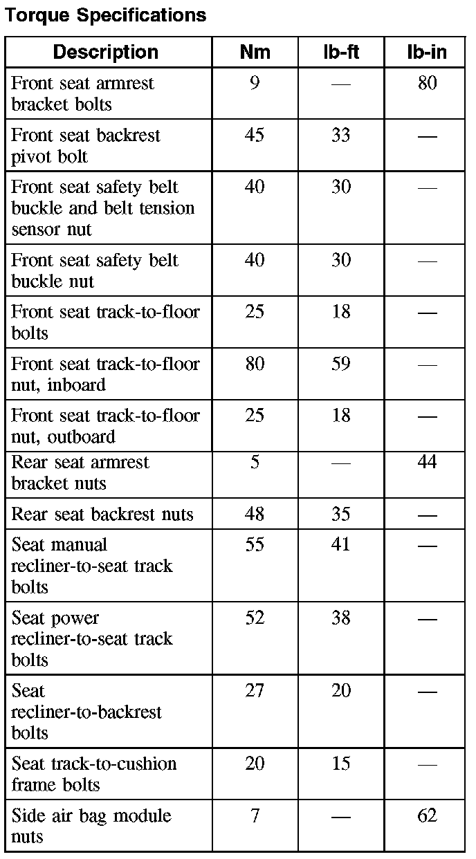 Torque Specifications: