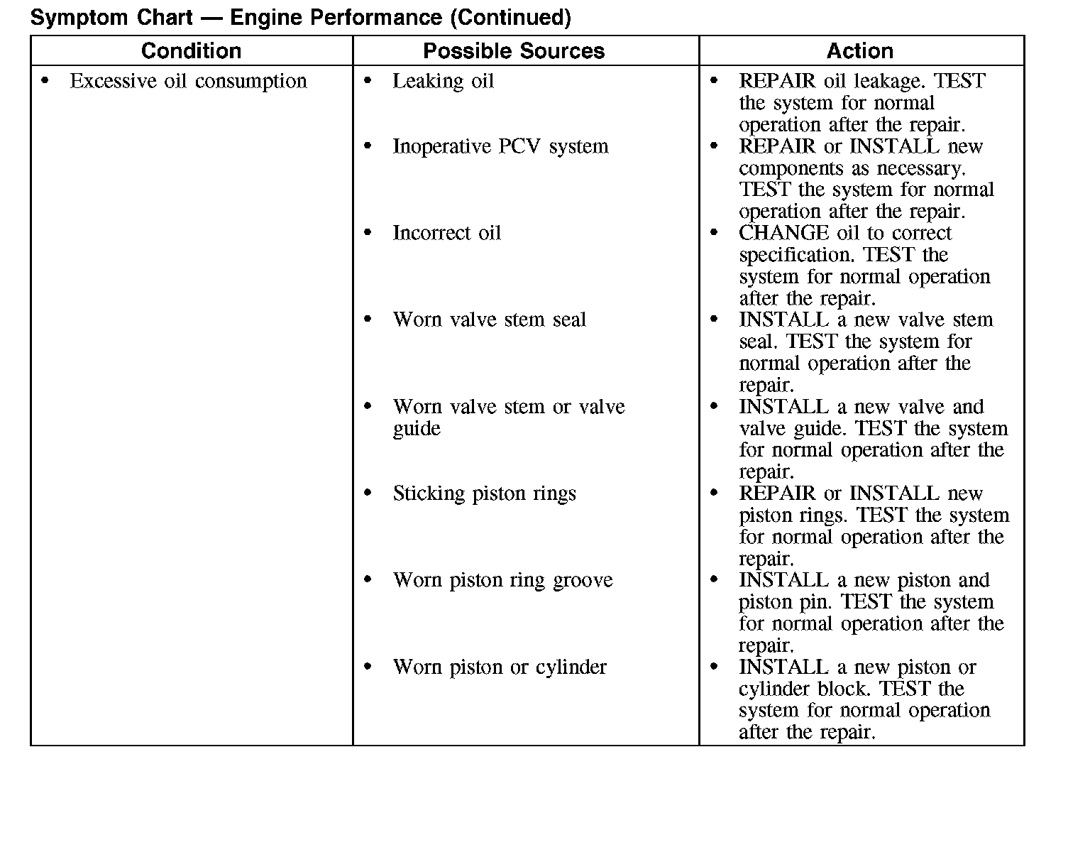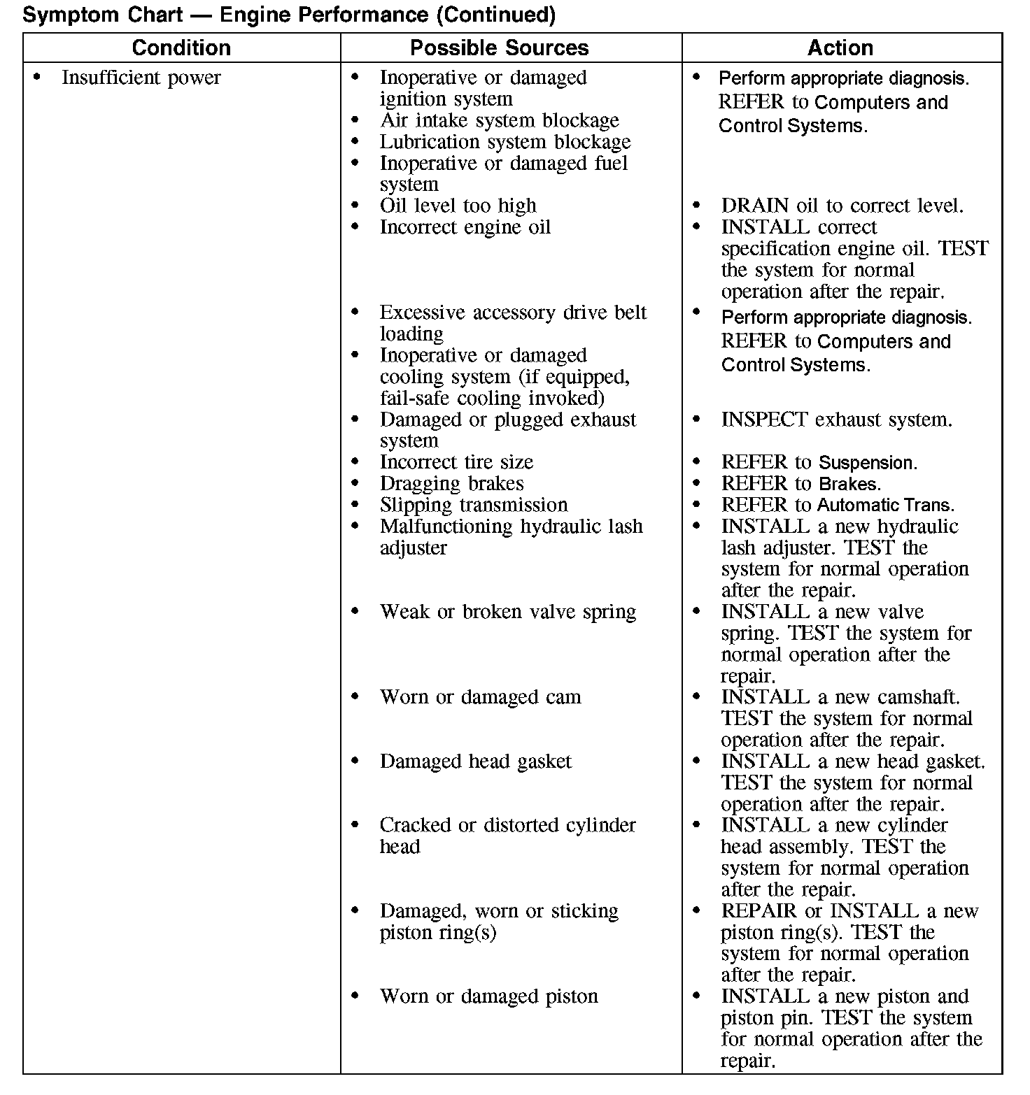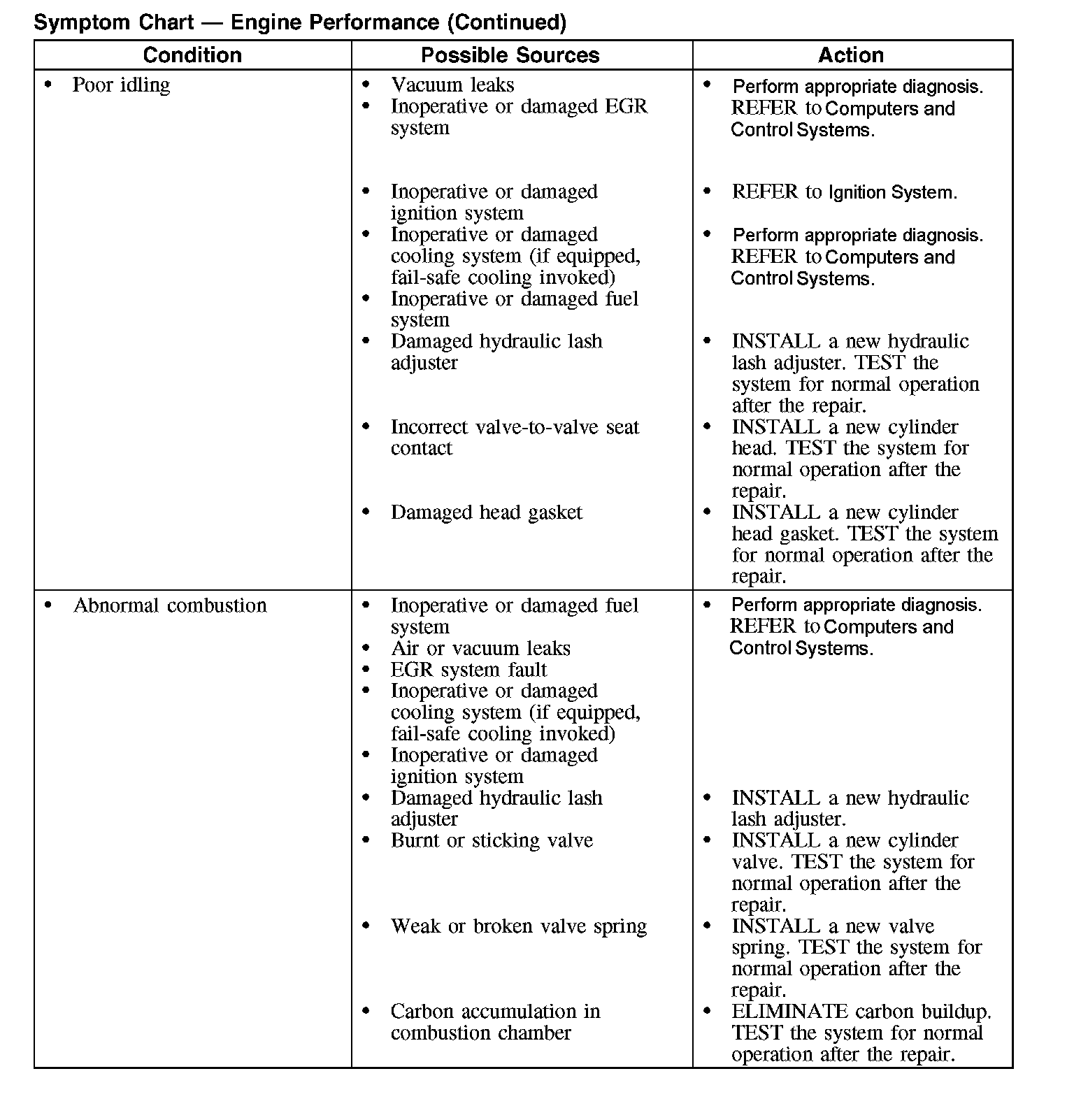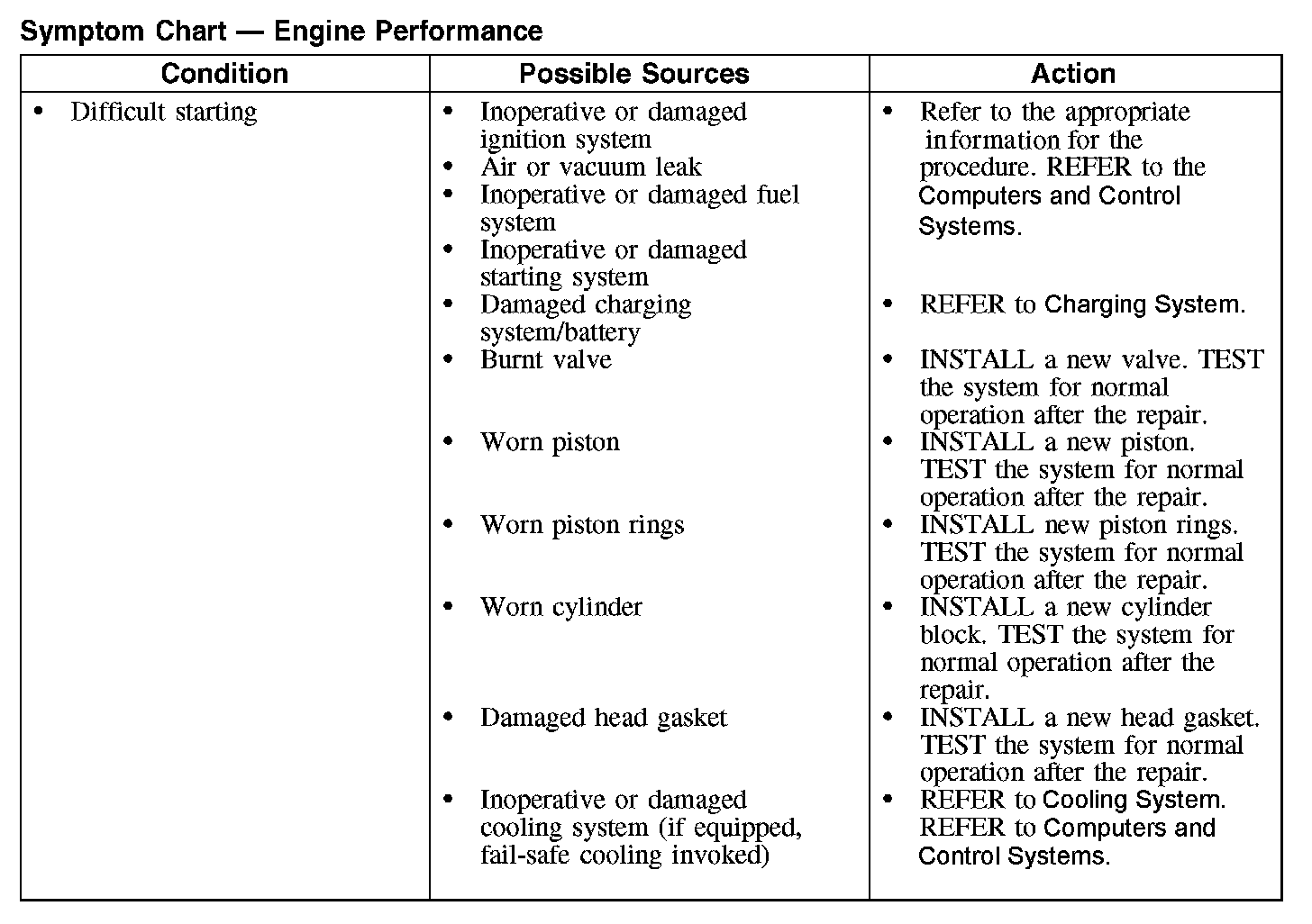 Symptom Chart - Engine Performance