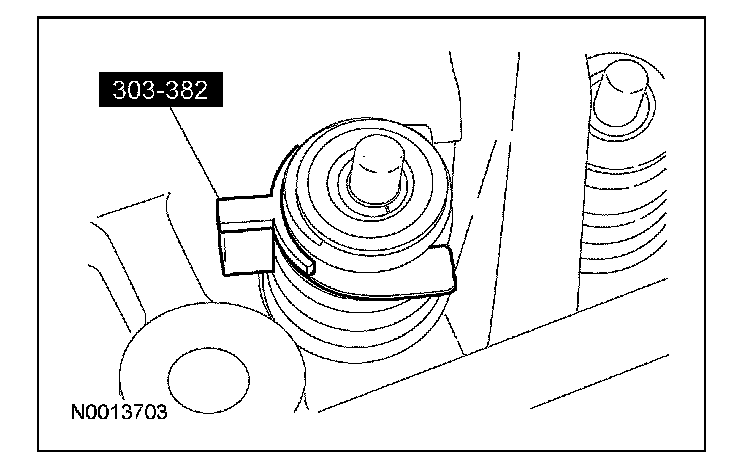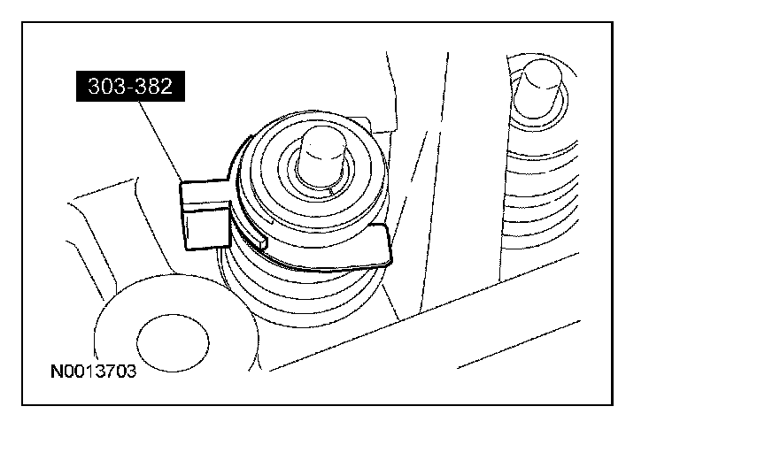 5. NOTE: If one or both tensioner mounting bolts are loosened or removed, the tensioner-sealing bead must be inspected for seal integrity. Any cracks, tears, cuts or separation from the tensioner body or permanent compression of the seal bead, will require installation of a new tensioner.