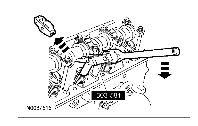 Using the special tool, compress the valve spring and remove the camshaft roller followers.