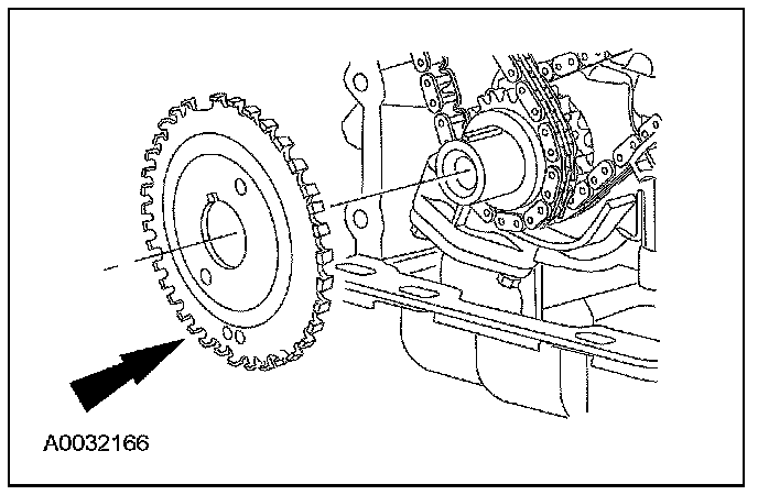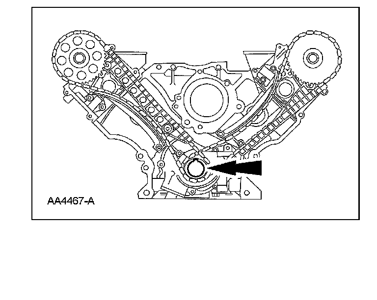 ^ Remove the RH timing chain from the crankshaft sprocket.