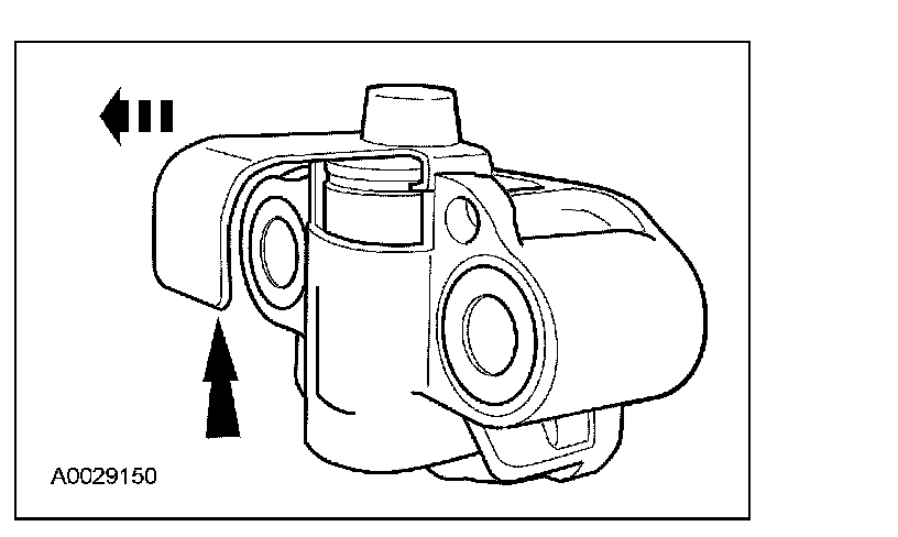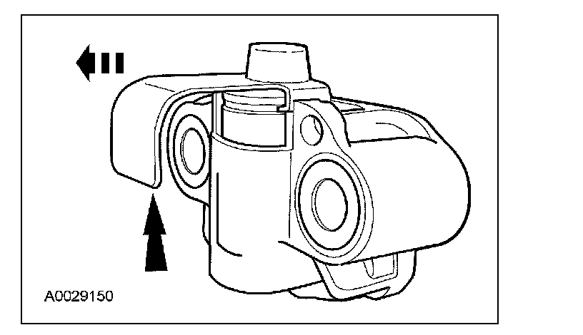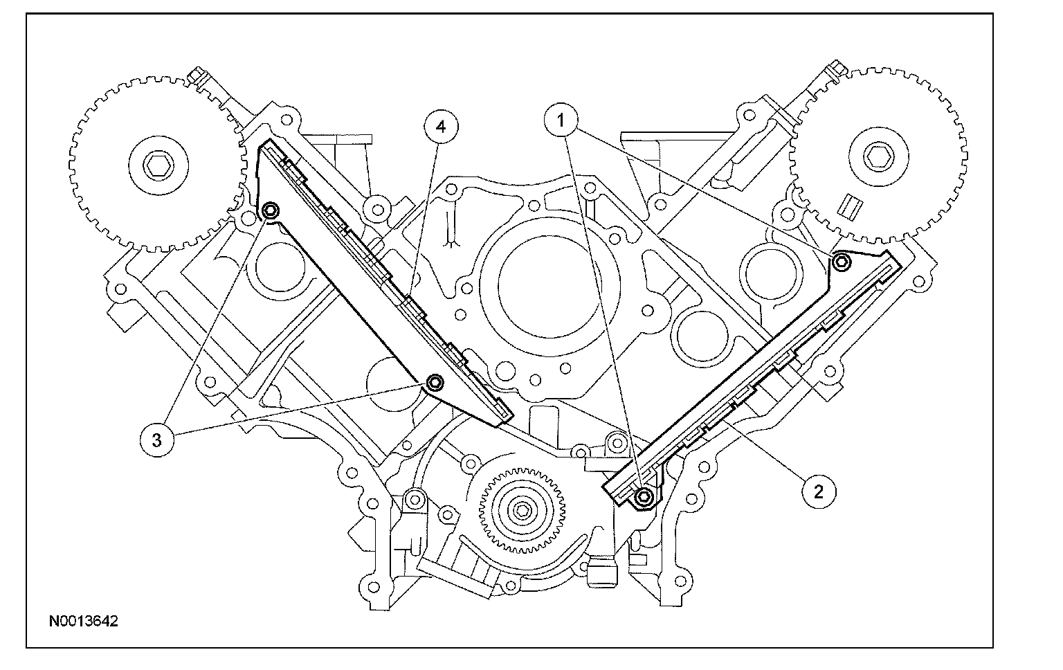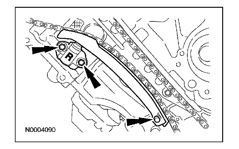 16. NOTE: The LH timing chain tensioner arm has a bump near the dowel hole for identification.