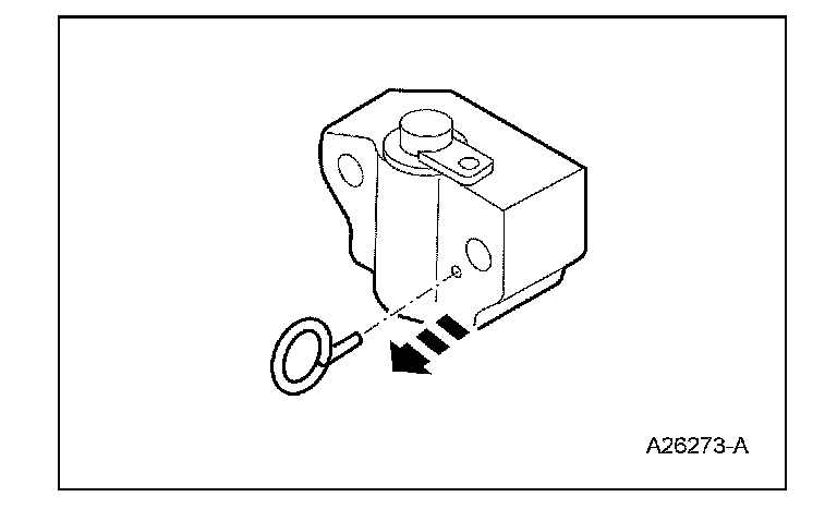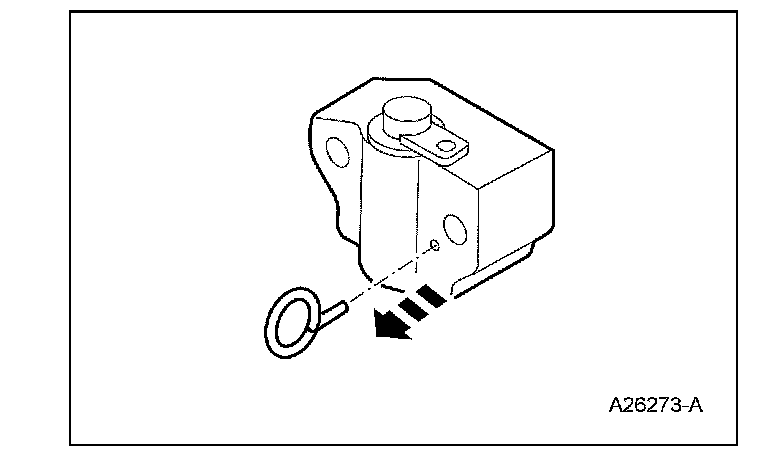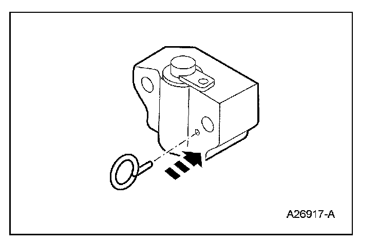 4. Install a paper clip into the hole of each tensioner housing to hold the ratchet assembly and plunger in during installation.