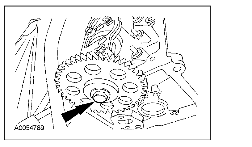 9. Install the camshaft sprockets and new bolts. Tighten the bolts in 2 stages.