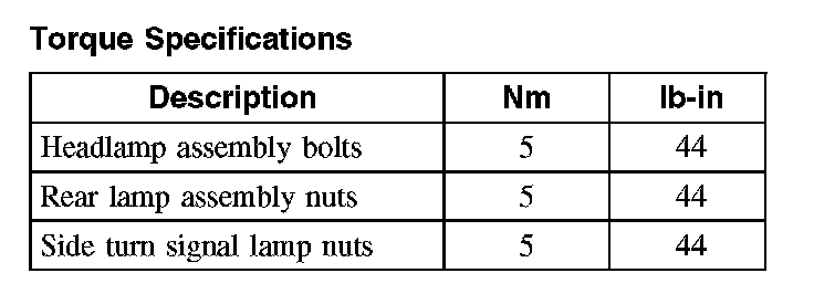 Torque Specifications: