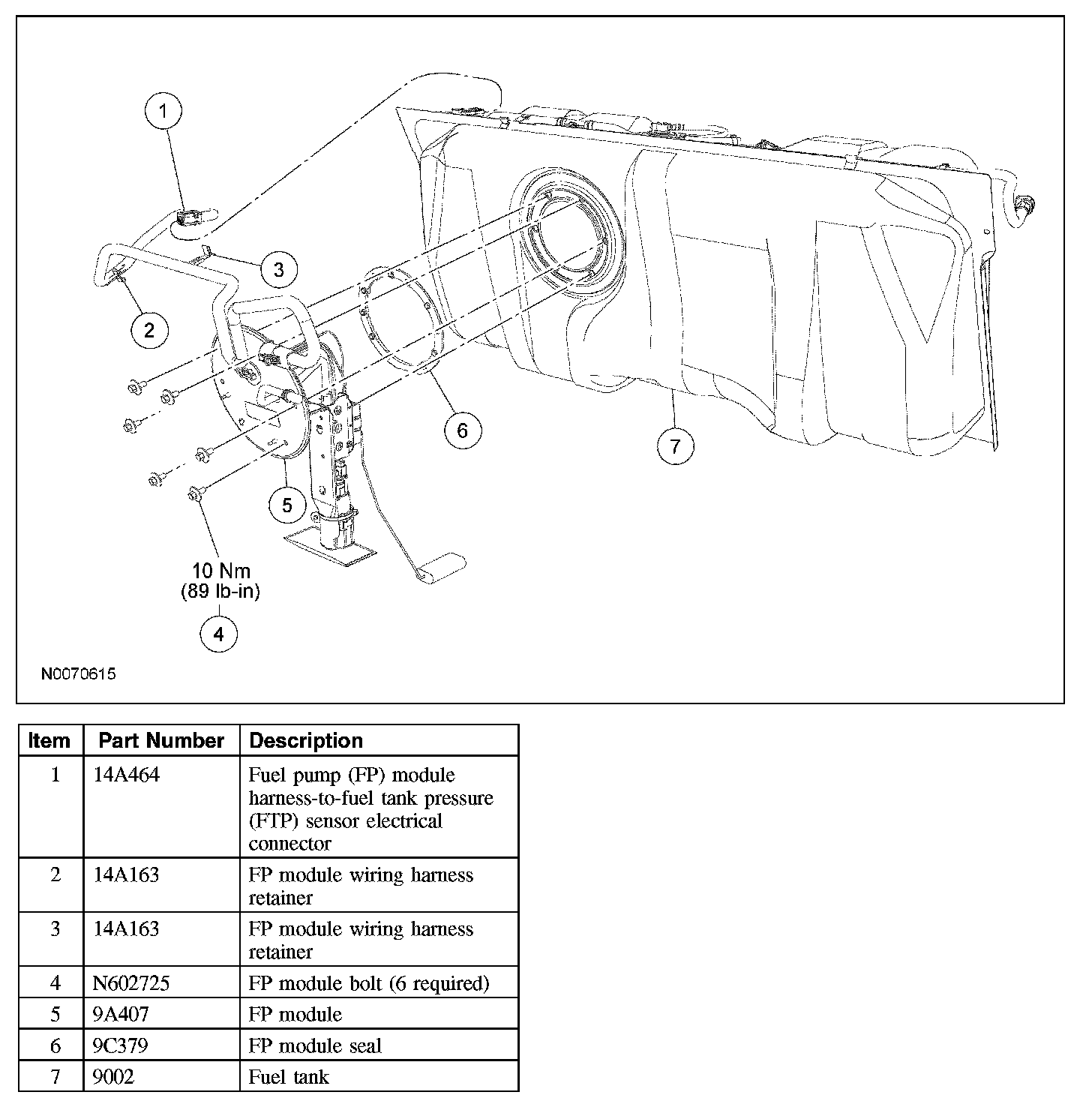 5. CAUTION: The fuel pump (FP) module must be handled carefully to avoid damage to the float arm and the filter.