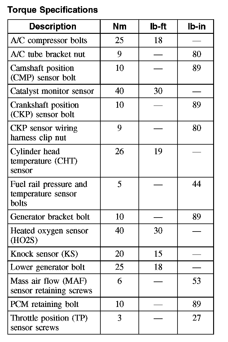 Torque Specifications: