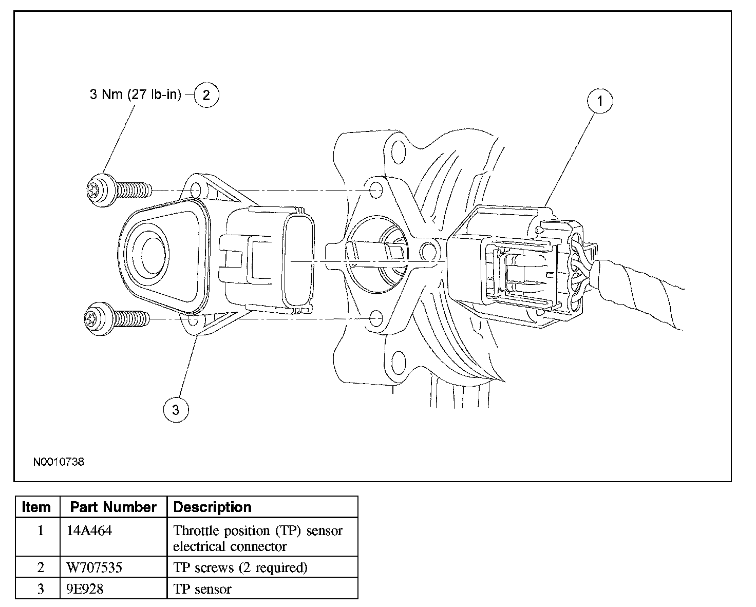 - Tighten to 3 Nm (27 lb-in).