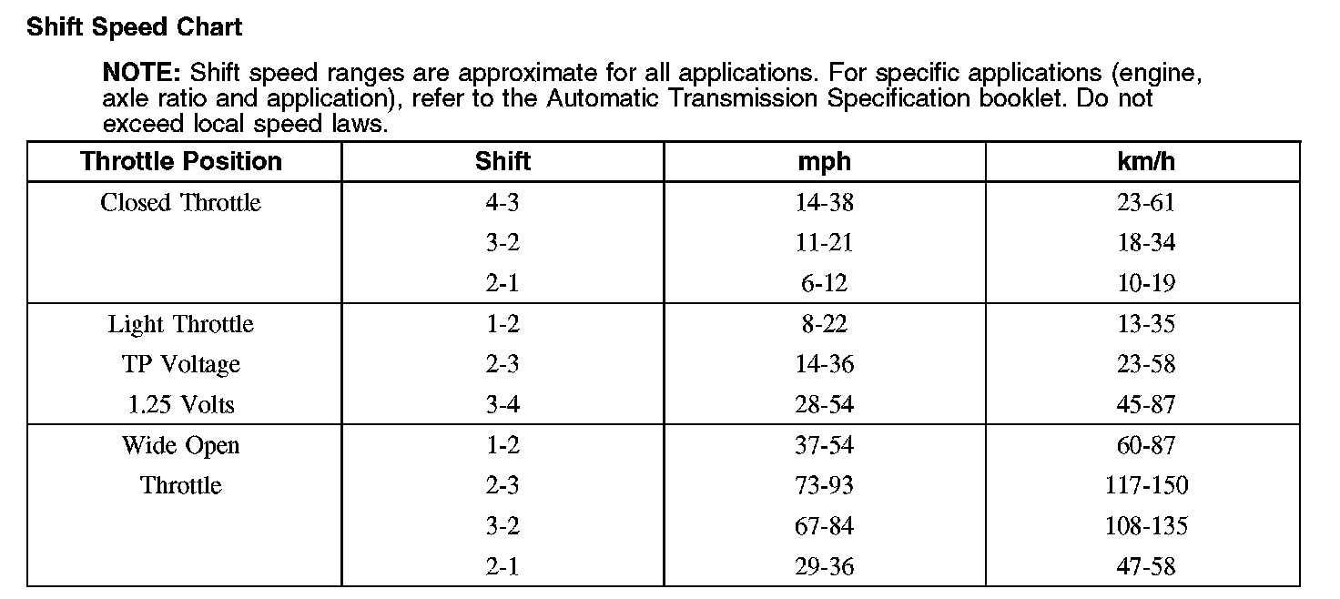 Shift Speed Chart: