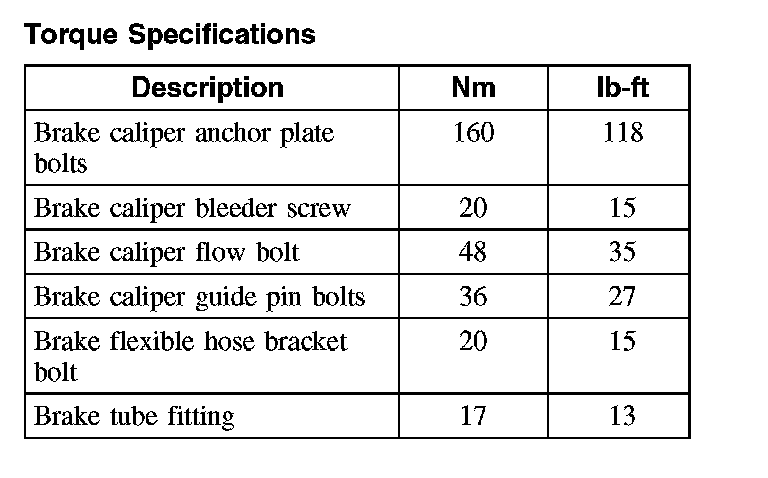 Torque Specifications, Front
