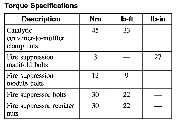 Torque Specifications: