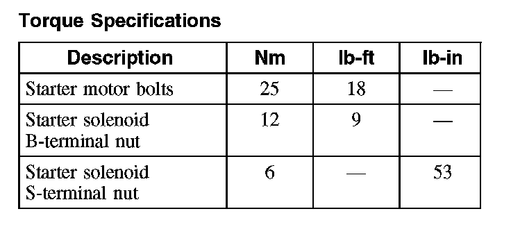 Starter Motor: Specifications