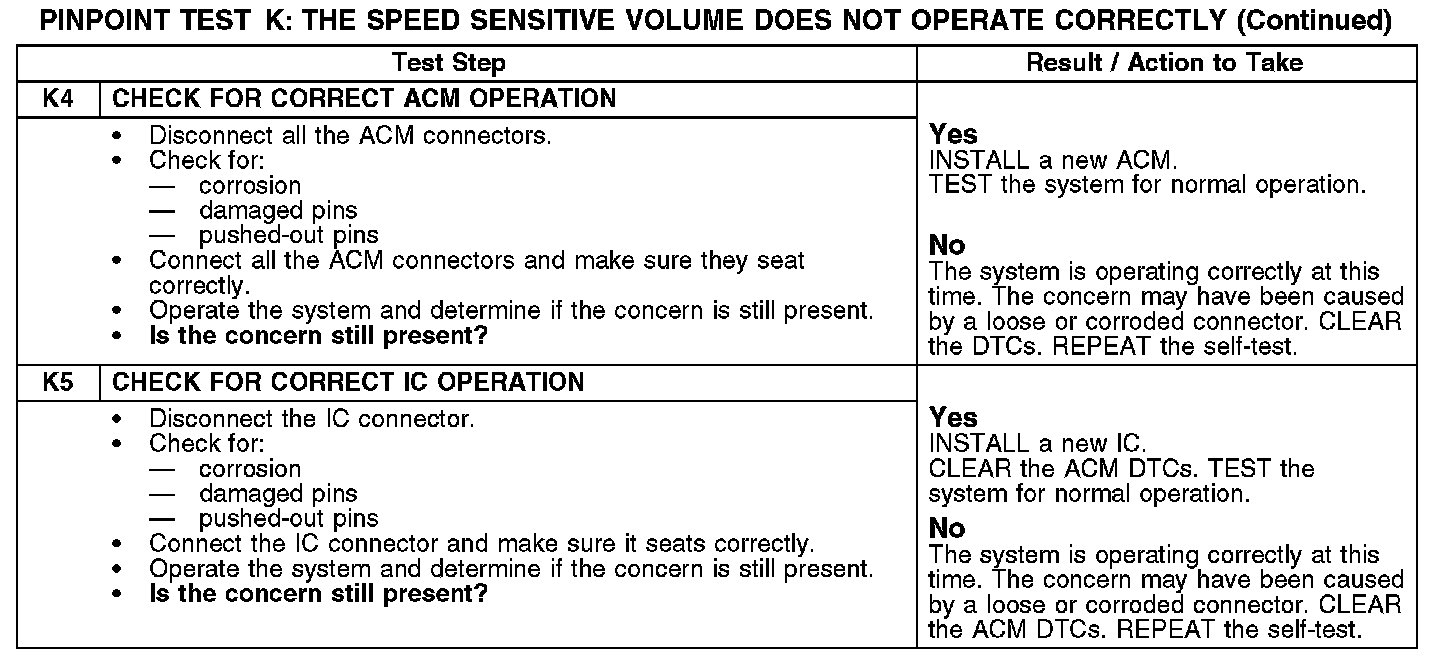 PINPOINT TEST K: THE SPEED SENSITIVE VOLUME DOES NOT OPERATE CORRECTLYNormal Operation