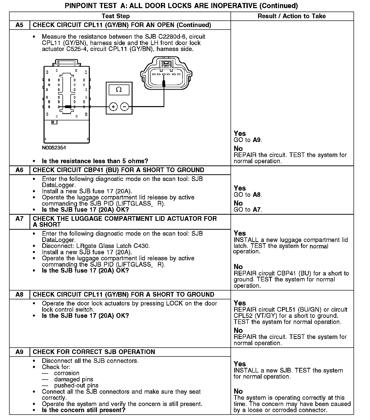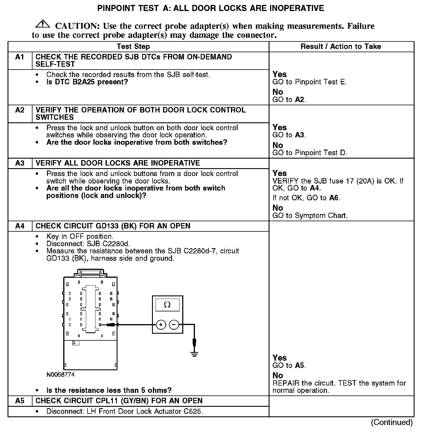 PINPOINT TEST A: ALL DOOR LOCKS ARE INOPERATIVENormal Operation