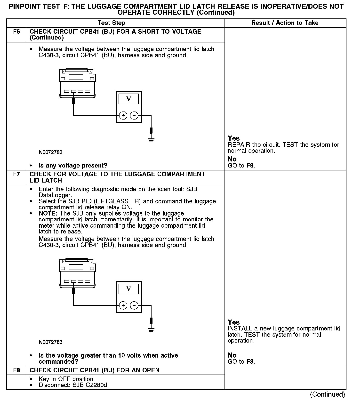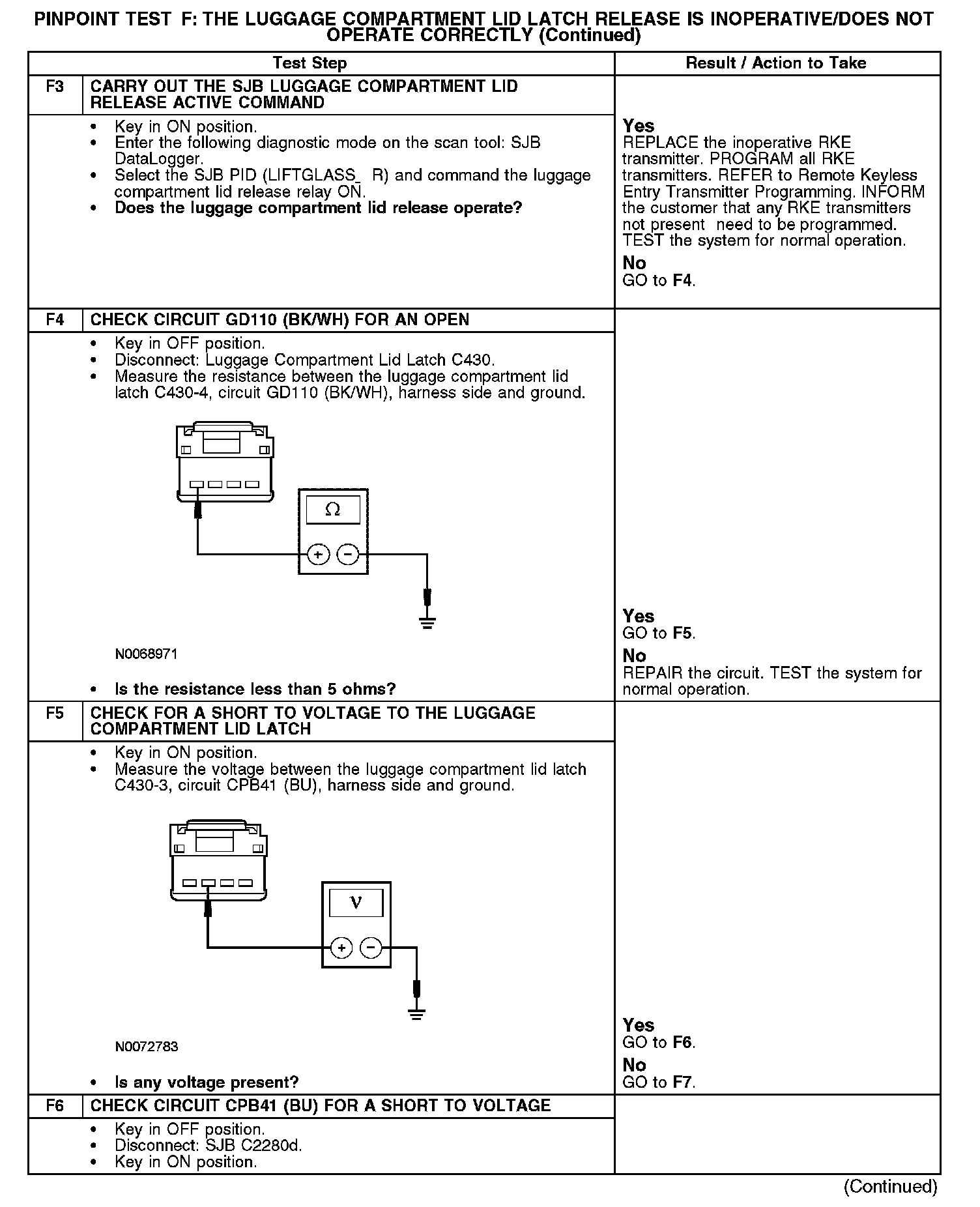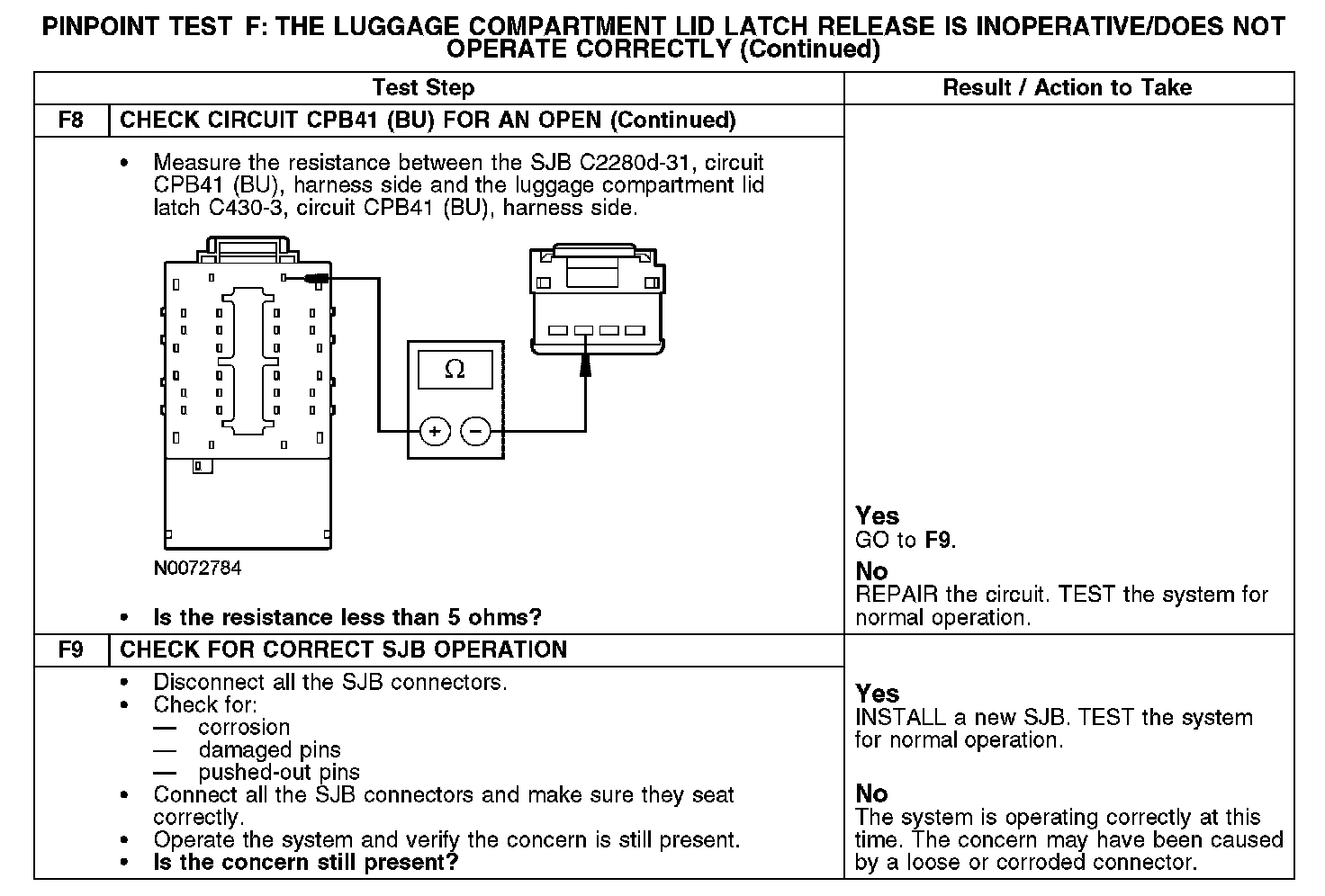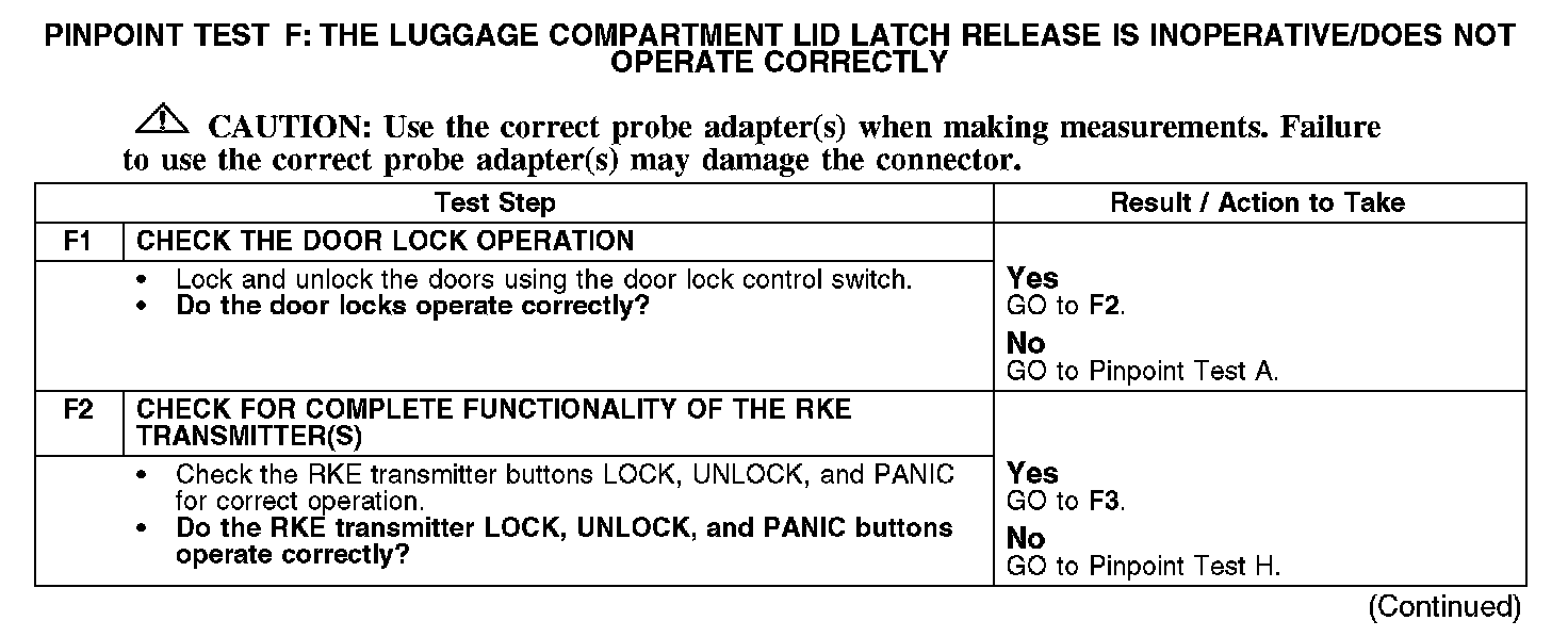 PINPOINT TEST F: THE LUGGAGE COMPARTMENT LID LATCH RELEASE IS INOPERATIVE/DOES NOT OPERATE CORRECTLYNormal Operation