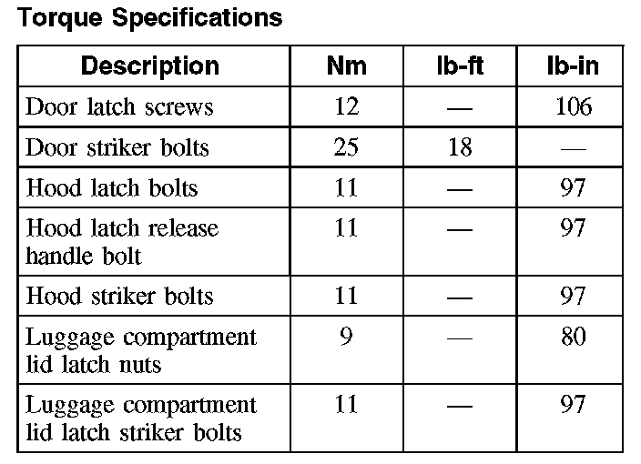 Torque Specifications: