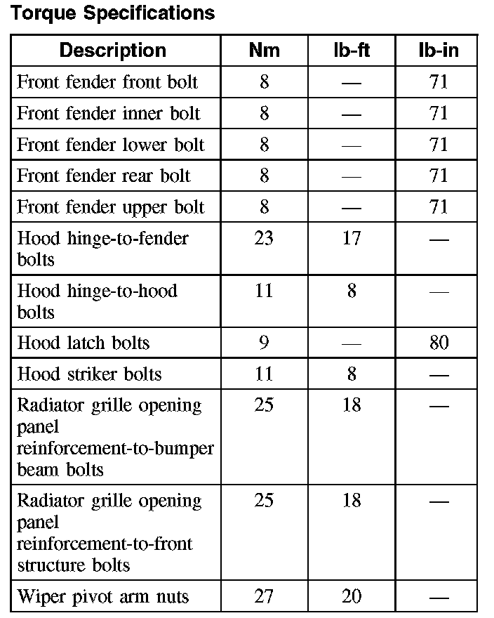 Torque Specifications: