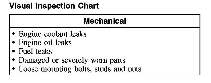 2. Visually inspect for obvious signs of mechanical damage. Refer to Visual Inspection Chart.