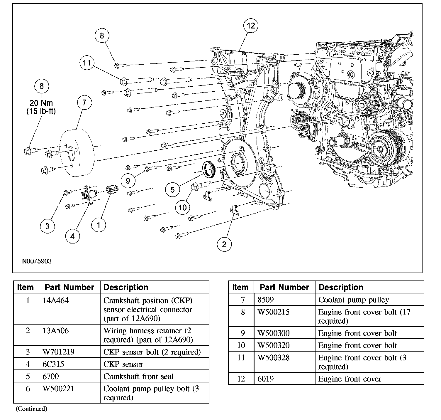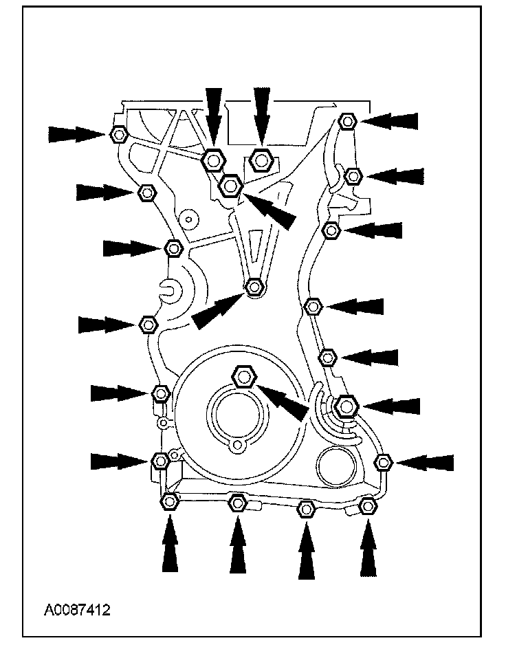 3. Install the engine front cover. Tighten the bolts in the sequence shown, to the following specifications: