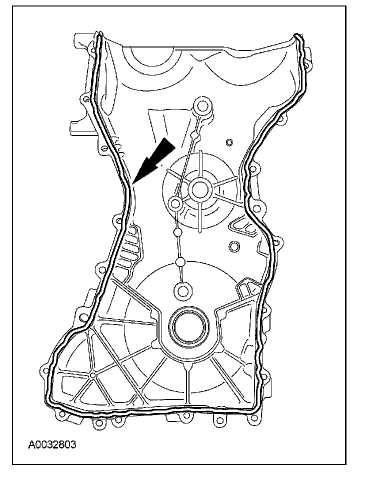 Apply a 2.5 mm (0.10 in) bead of silicone gasket and sealant to the cylinder head and oil pan joint areas. Apply a 2.5 mm (0.10 in) bead of silicone gasket and sealant to the front cover.
