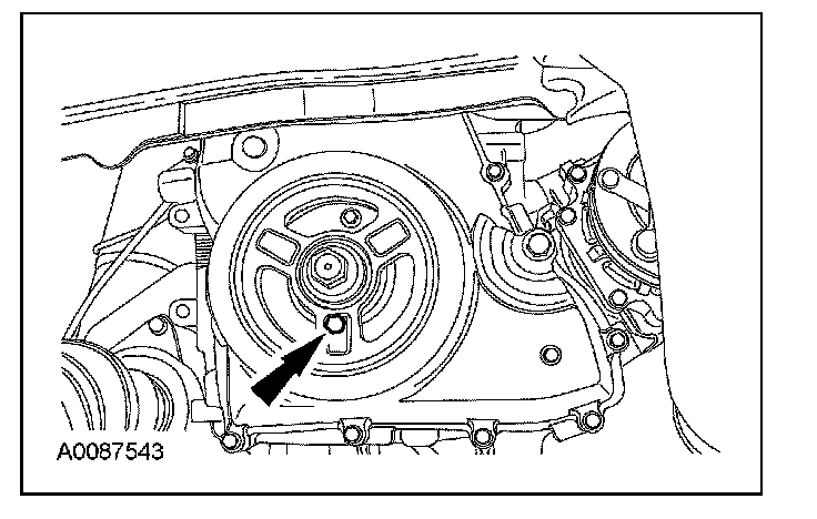 12. CAUTION: Only hand-tighten the bolt or damage to the front cover can occur.