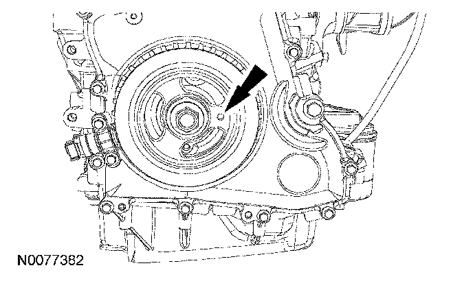 3. Turn the crankshaft clockwise until the hole in the crankshaft pulley is in the 3 o'clock position.
