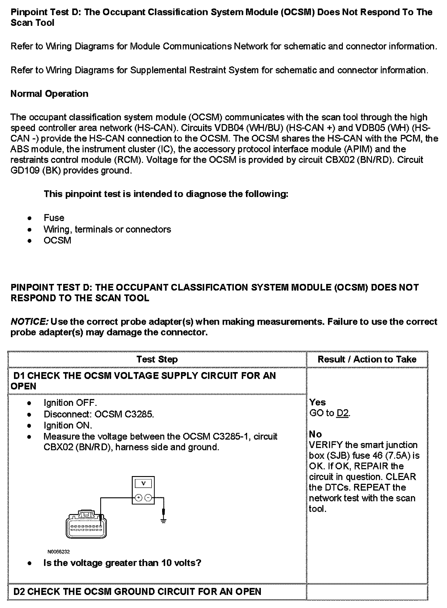 Pinpoint Test D: The Occupant Classification System Module (OCSM) Does Not Respond To The Scan Tool