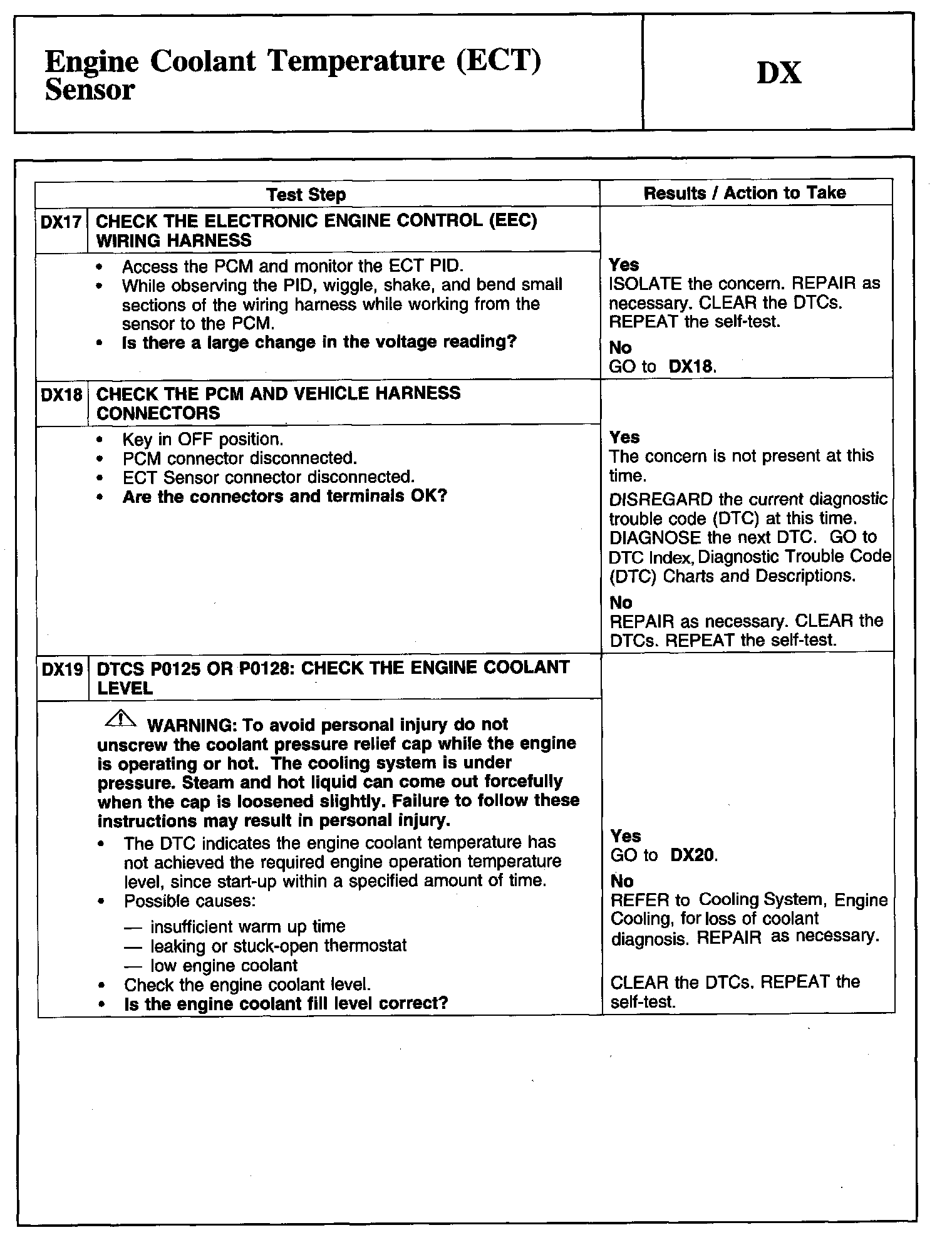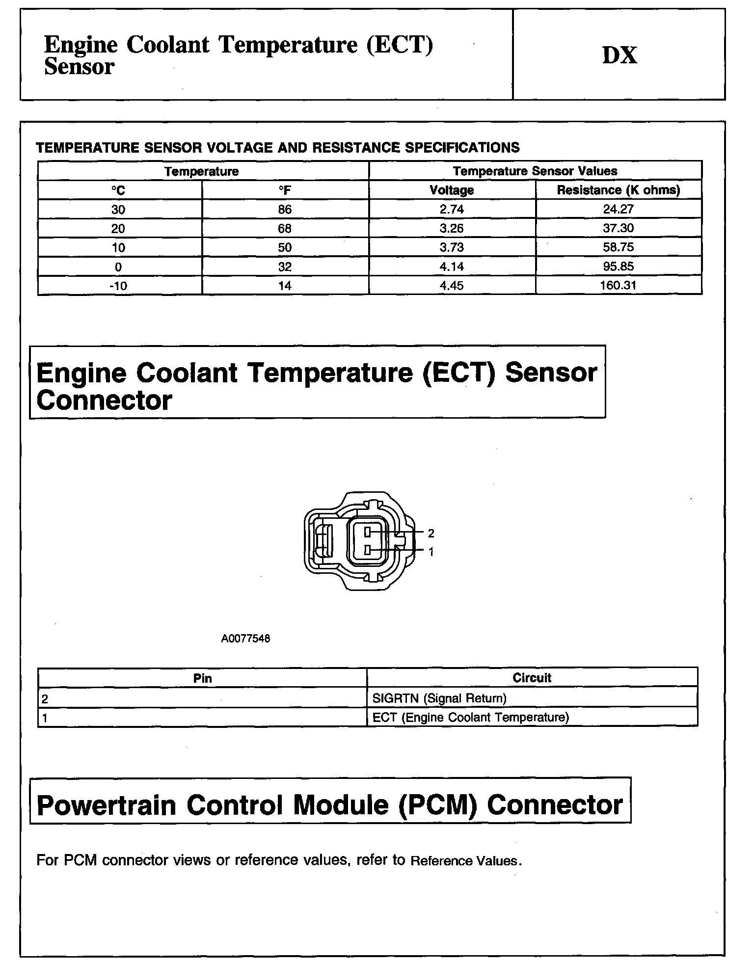 Tests DX: Engine Coolant Temperature (ECT) Sensor