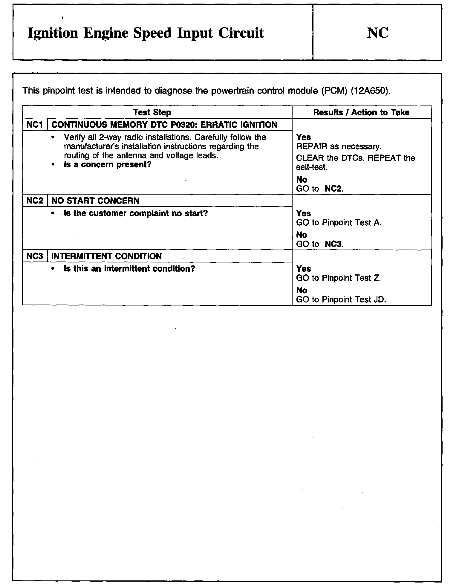 PINPOINT TEST NC: IGNITION ENGINE SPEED INPUT CIRCUIT