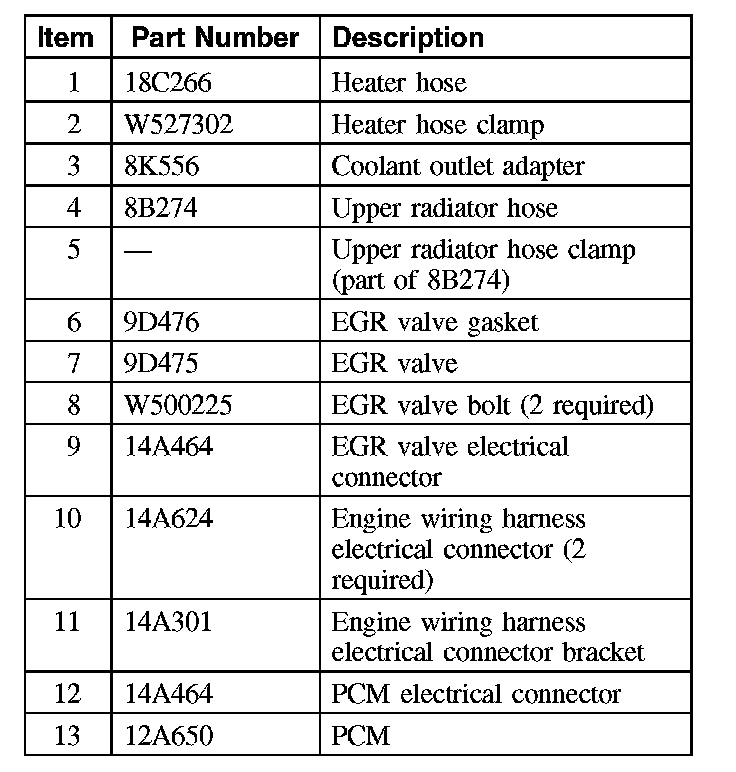 9. CAUTION: Do not use metal scrapers, wire brushes, power abrasive discs or other abrasive means to clean the sealing surfaces. These tools cause scratches and gouges that make leak paths. Use a plastic scraping tool to remove all traces of the exhaust gas recirculation (EGR) valve gasket.