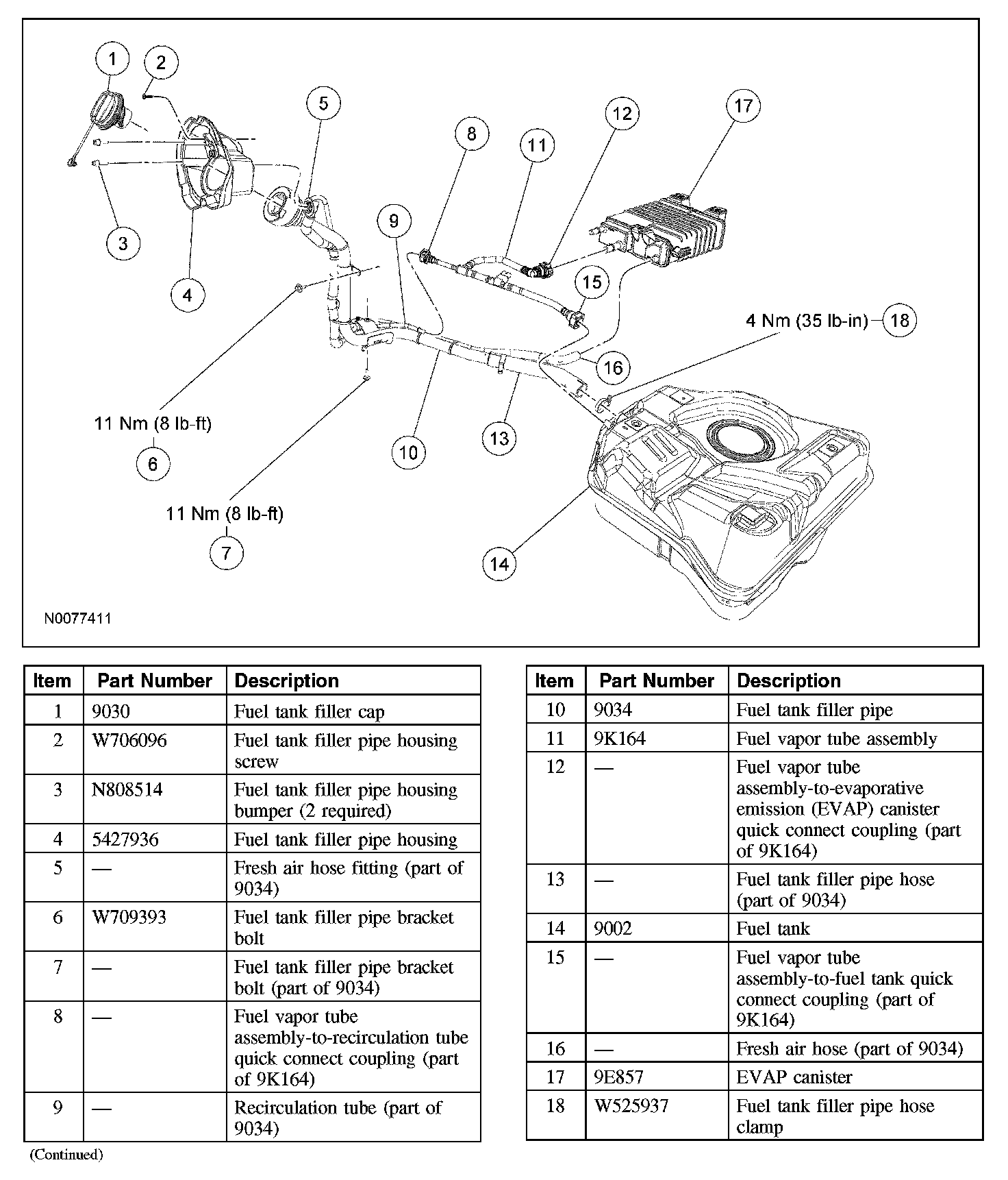 10. Disconnect the fresh air hose fitting from the fuel tank filler pipe housing.