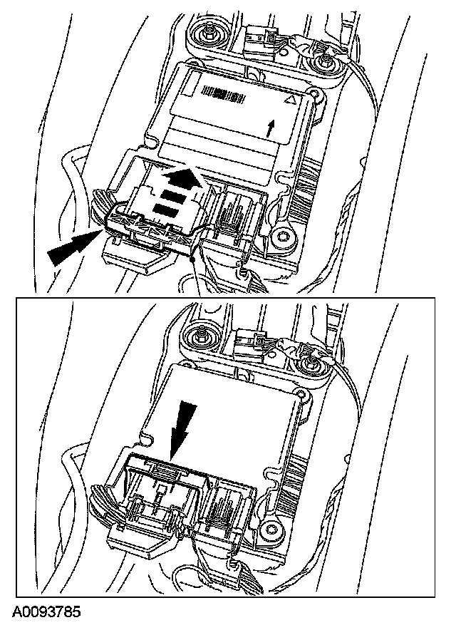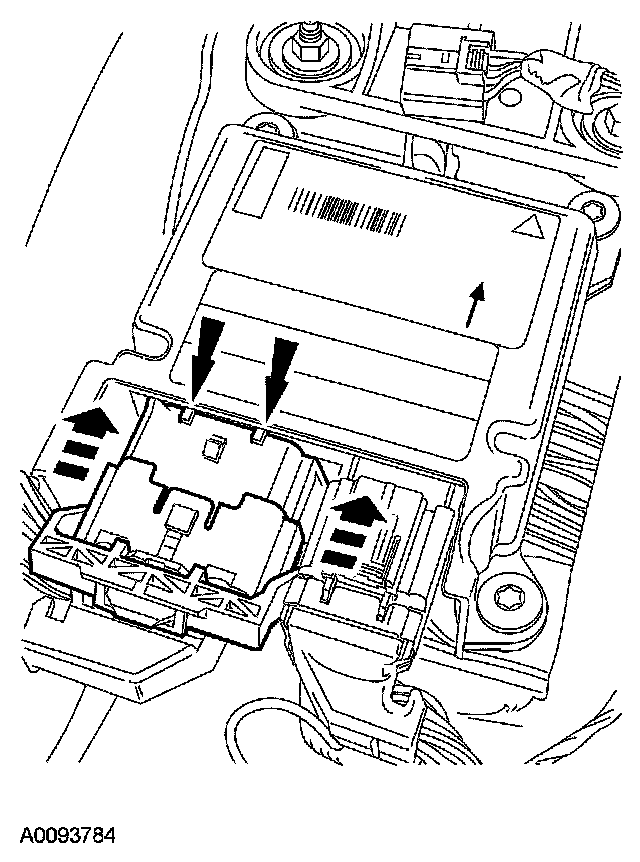 - CAUTION: Do not push the connector to where the lever pivots and seats itself. Light pressure is needed to get the connector into position on the restraint control module (RCM) before using the lever to fully seat the connector.