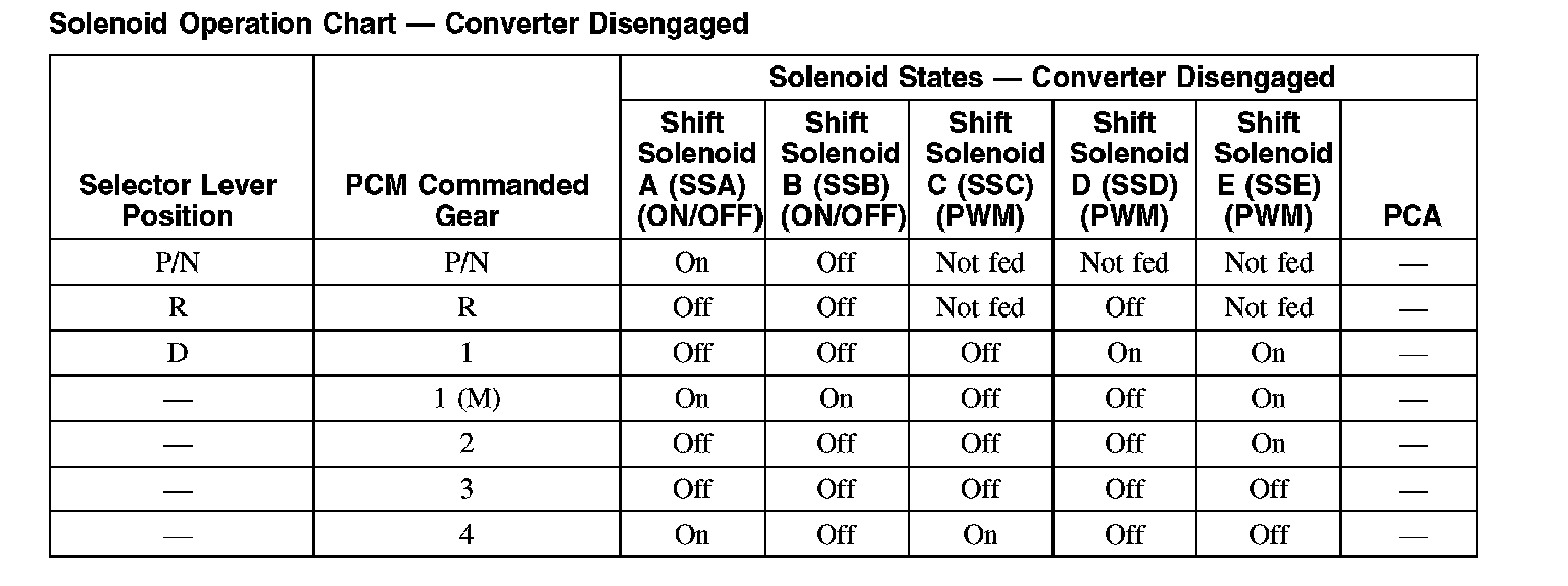 Solenoid Operation Chart - Converter Disengaged: