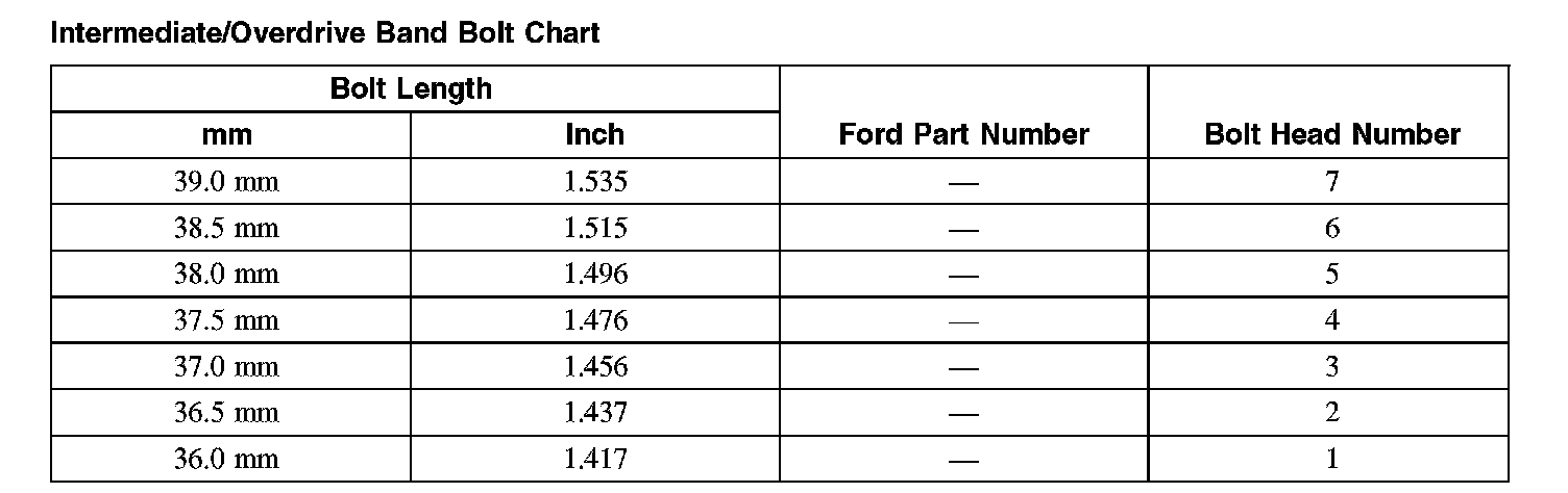 Intermediate/Overdrive Band Bolt Chart