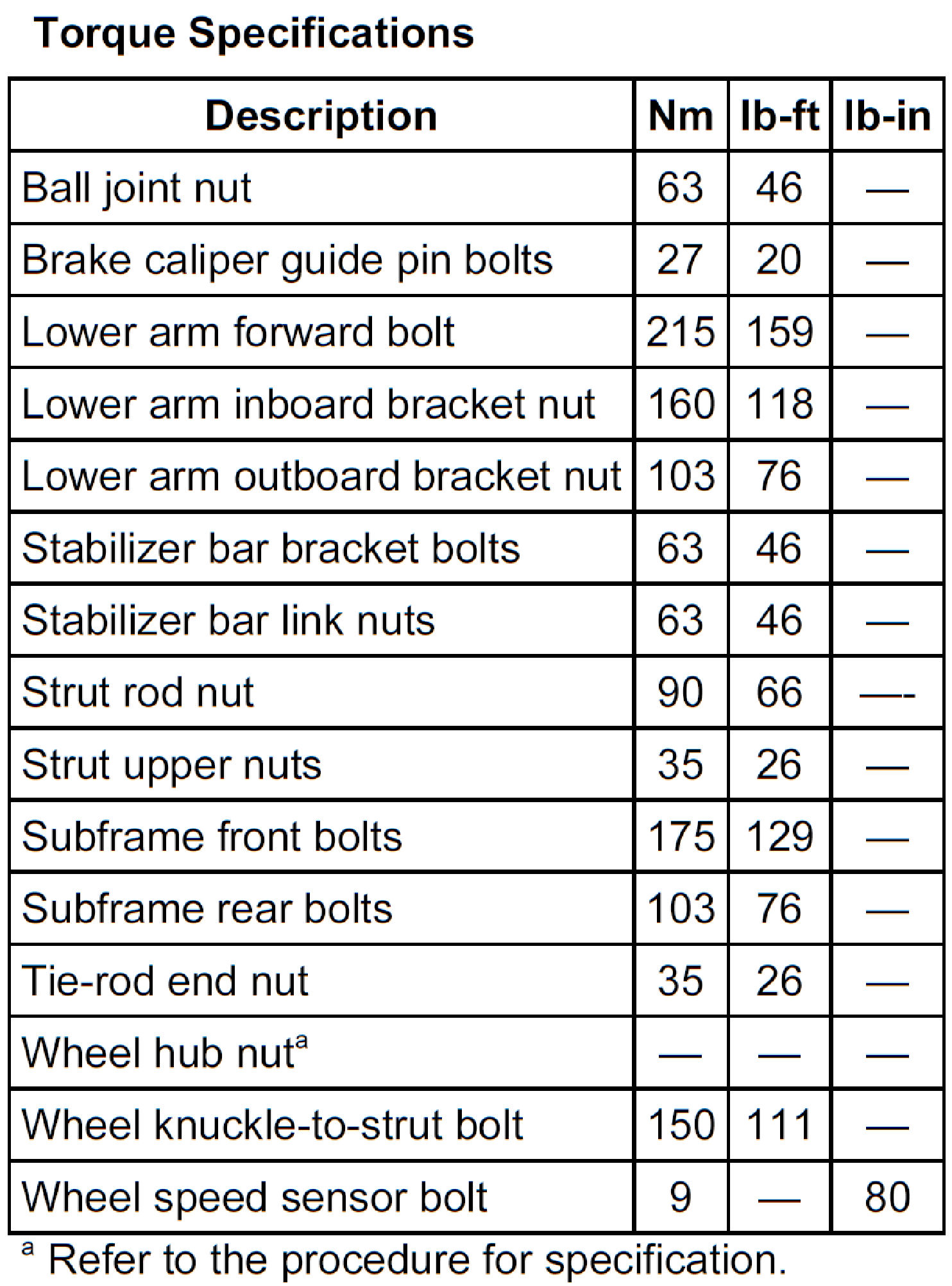 Torque Specifications