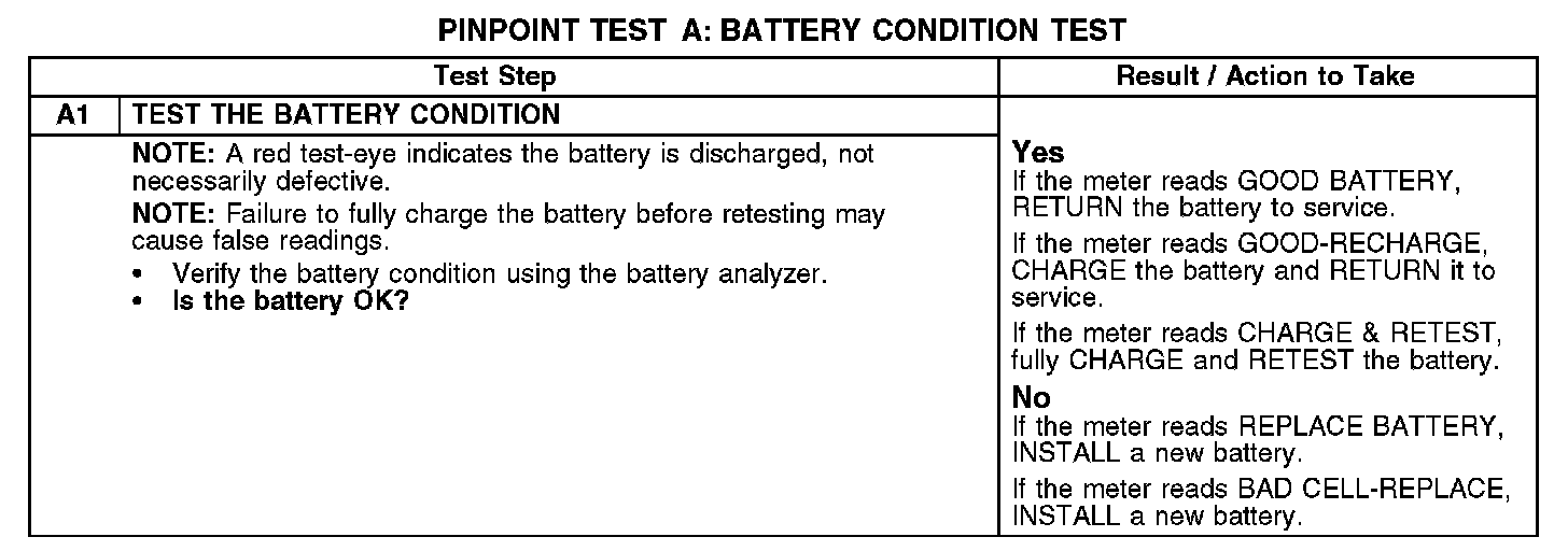PINPOINT TEST A: BATTERY CONDITION TEST