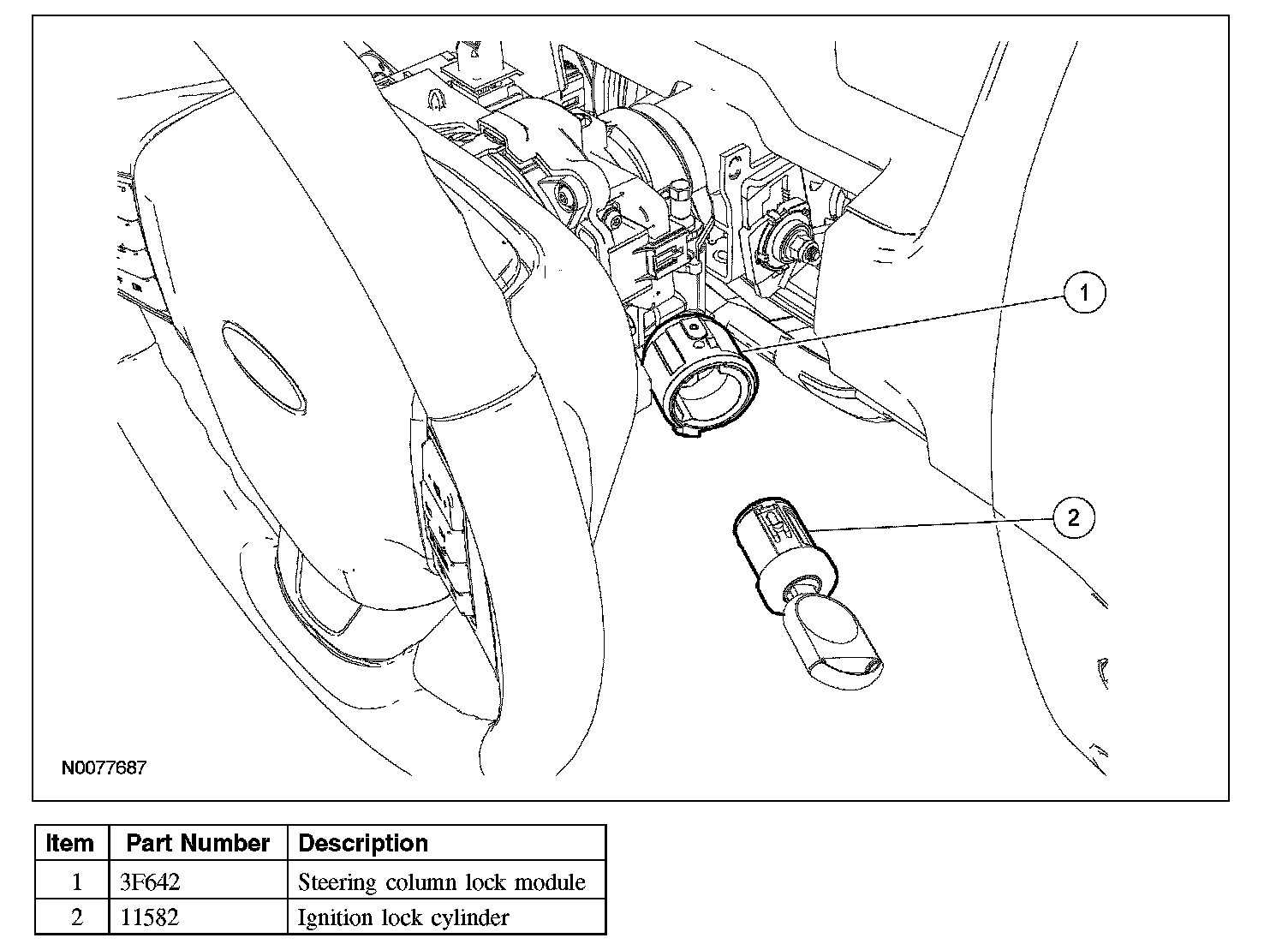 NOTE: For non-functional ignition lock cylinders, the steering column lock module has to be replaced.