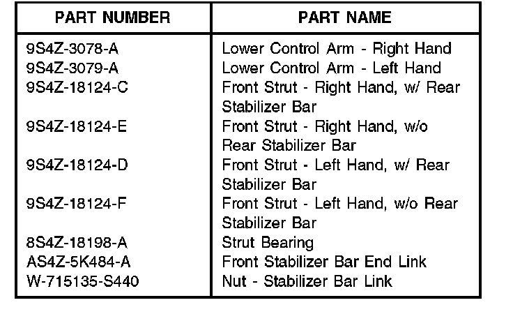 (1) Yes - remove and install two (2) revised Front Stabilizer Bar End Links and four (4) revised stabilizer bar end link nuts per Workshop Manual (WSM), Section 204-01; torque to 46 lb-ft (63 N.m).