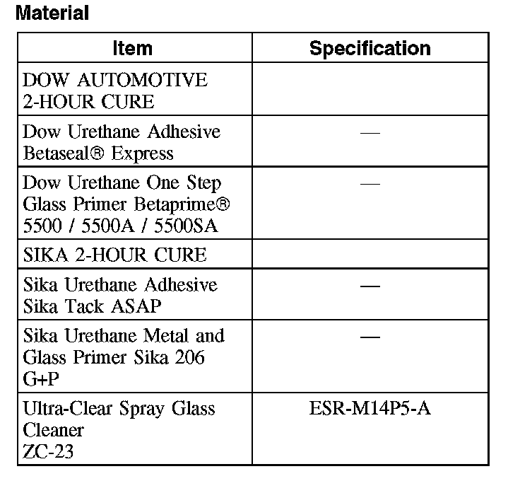 - Be sure to use the same brand and cure-rate products for the adhesive and primer. Do not mix different brands of urethane and primer. Refer to the Material Chart.