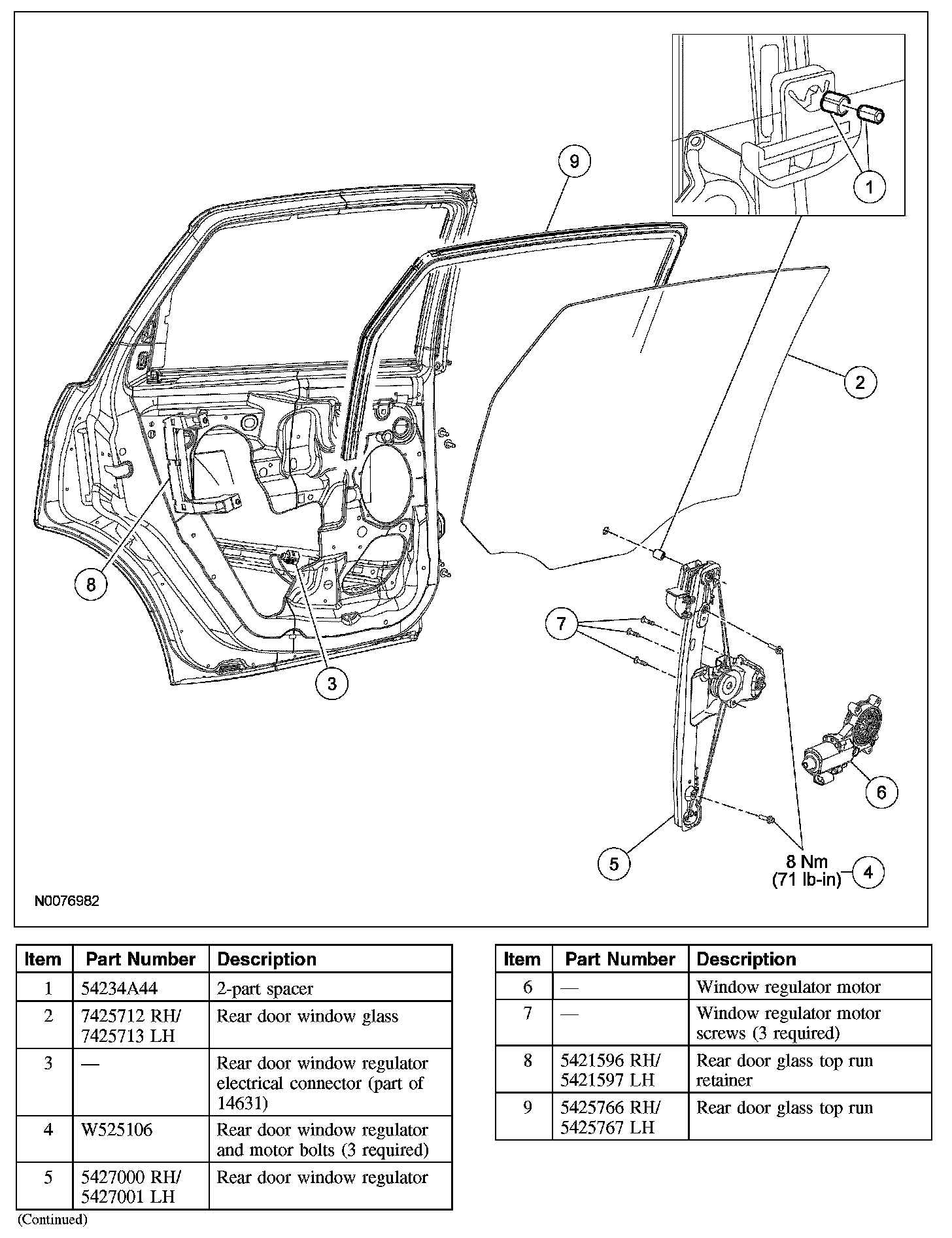 WINDOW REGULATOR AND MOTOR - REAR DOORExploded View