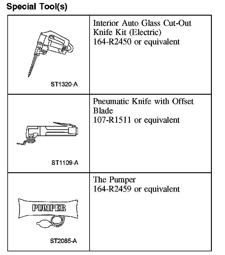 CAUTION: To avoid rust formation, use extreme care not to scratch the paint or primer, or otherwise damage the pinch weld during glass removal.