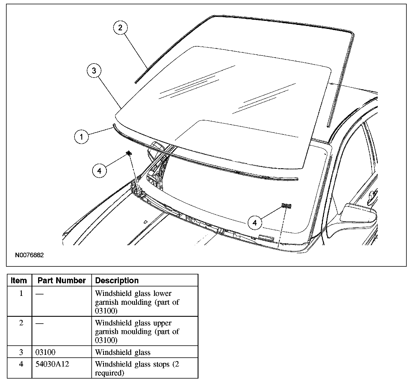 CAUTION: Before positioning the windshield glass, open vehicle windows to prevent the air pressure of closing doors from affecting the adhesive bond.