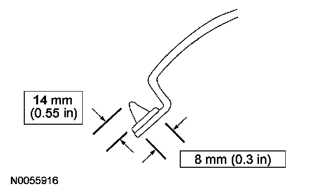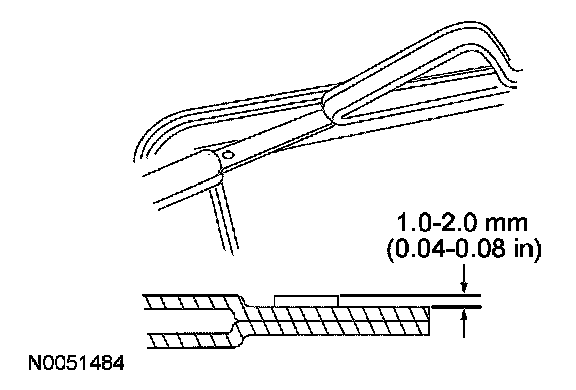 Using an appropriate tool, trim the urethane adhesive leaving a 1 mm to 2 mm (0.04 in to 0.08 in) base of original equipment urethane on the pinchweld.
