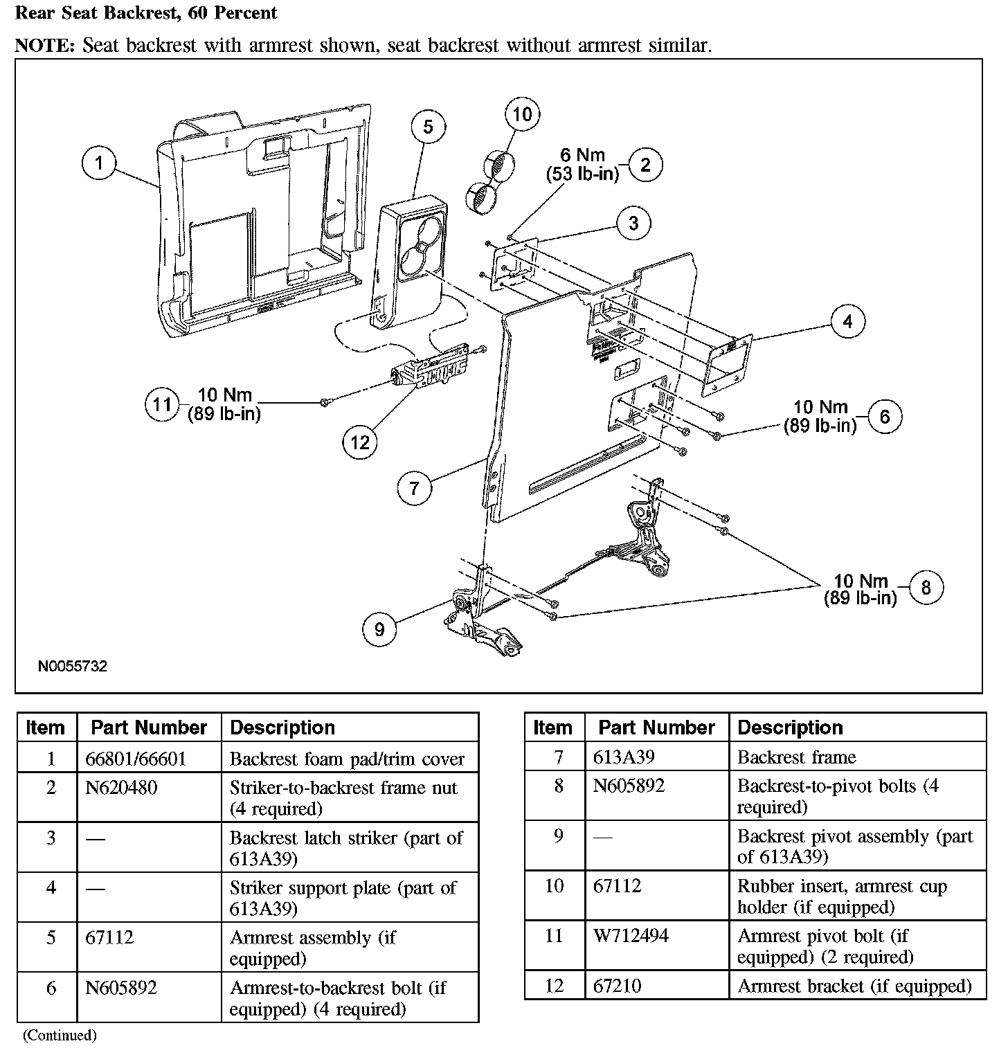 1. NOTE: Make sure the rear seat safety belt webbing is positioned in front of the backrest assembly for installation and is not positioned underneath the backrest pivot assembly.