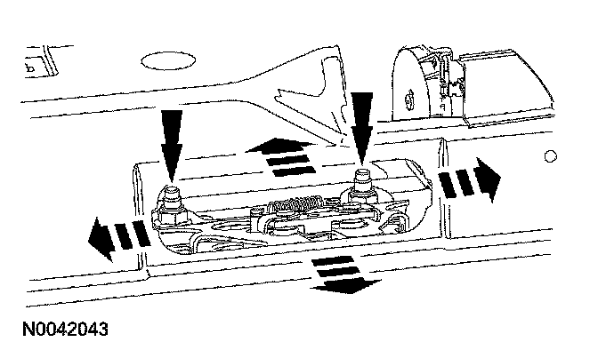 Position the rear seat backrest pivot assembly to the 2 locator pins on the floor.