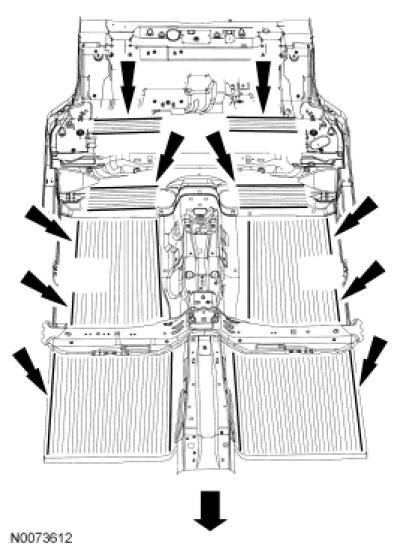 NOTE: To restore the vehicle to design intent, missing or damaged sound deadeners and insulators should be installed with the correct service replacement component.