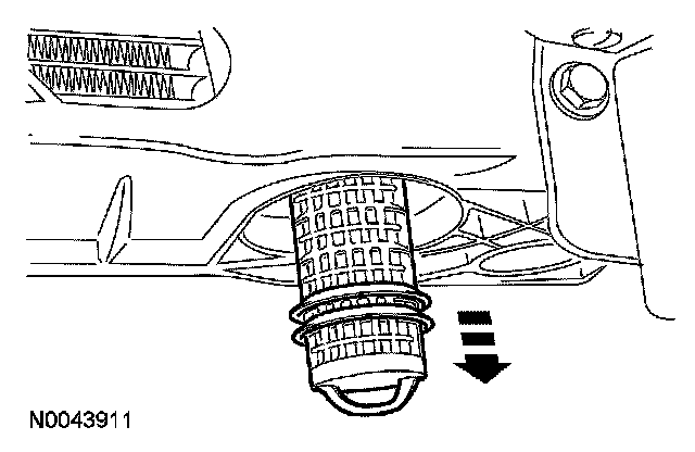 CAUTION: Care must be taken to minimize exposure of the receiver/drier cartridge to outside air. If multiple air conditioning (A/C) system components are being removed and installed, the receiver/drier cartridge should be installed last. The new receiver/drier cartridge should not be removed from it's packaging until it is ready to be installed. Evacuation of the A/C system must be started as soon as the receiver/drier cartridge is installed. Excessive exposure of the receiver/drier cartridge to outside air will result in moisture contamination of the receiver/drier cartridge desiccant.